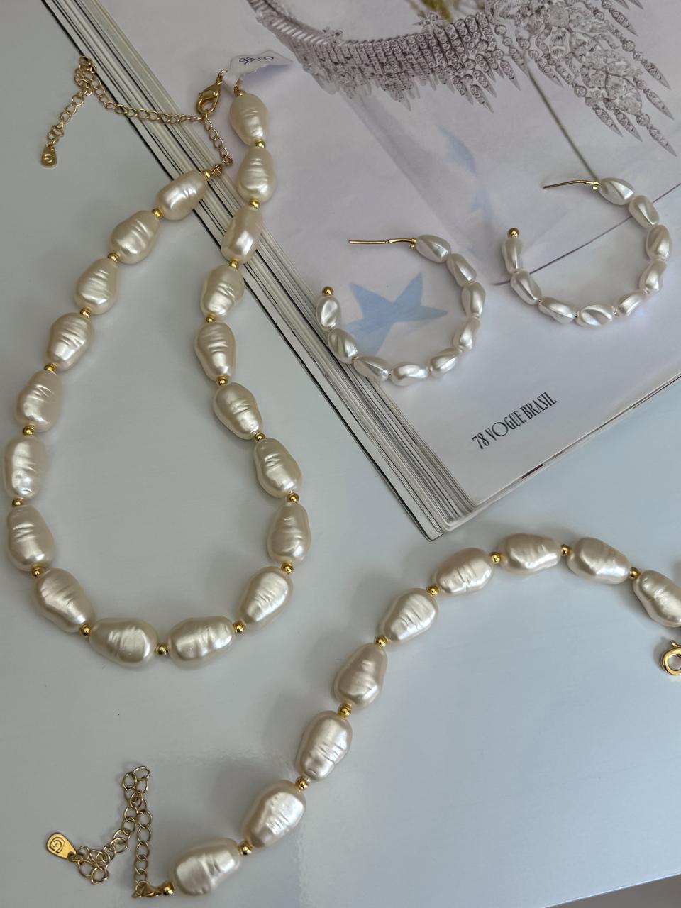 Choker de pérola de água doce banhada em ouro 18k com extensor;