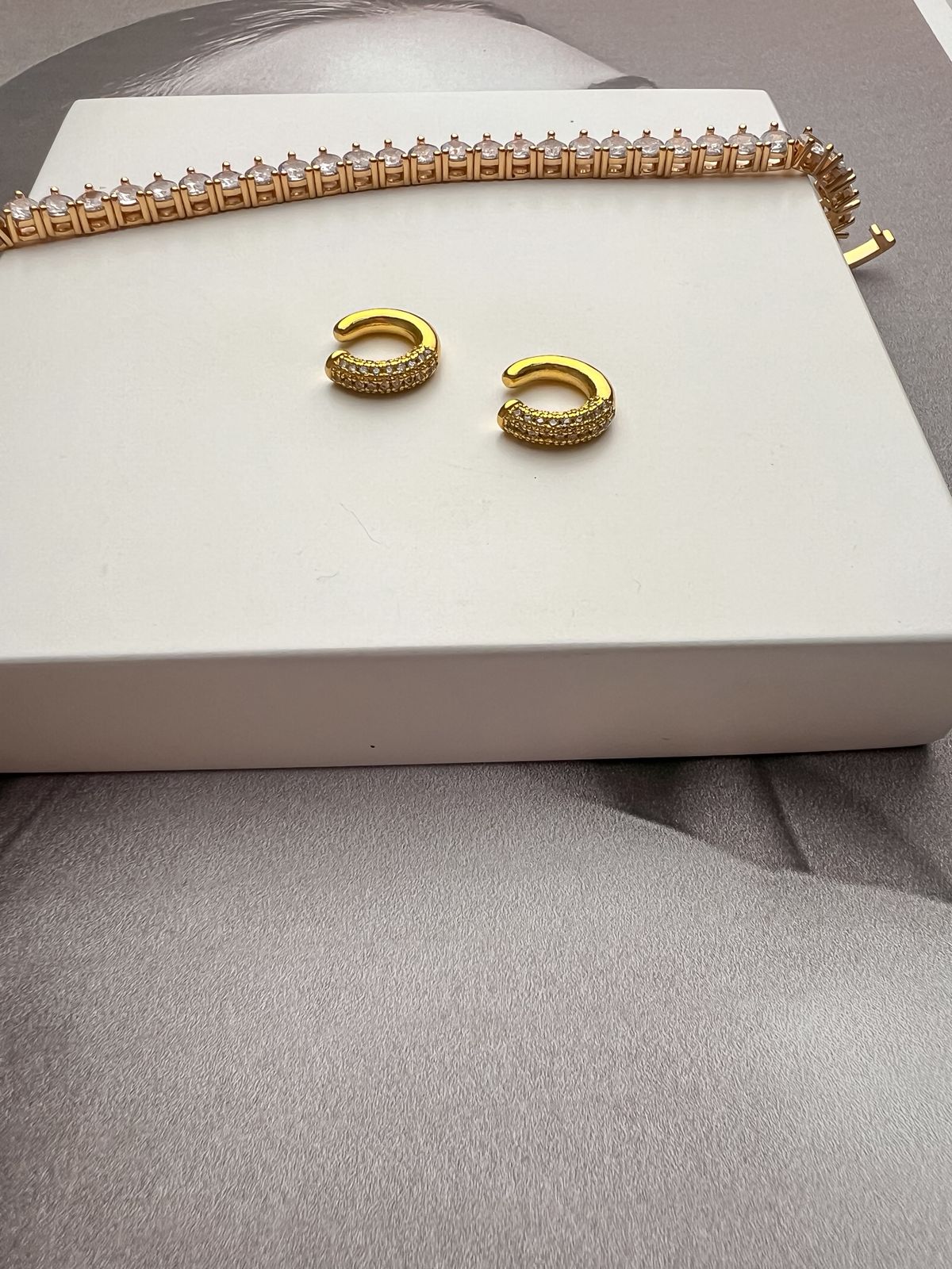 Piercing fake com detalhe cravejado no rosa escuro banhado em ouro branco;