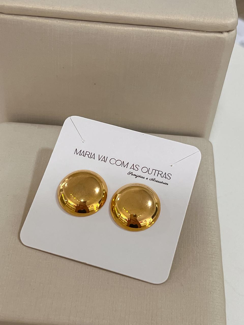 Brinco liso redondo em aço inoxidável dourado, com ponteira centralizada.