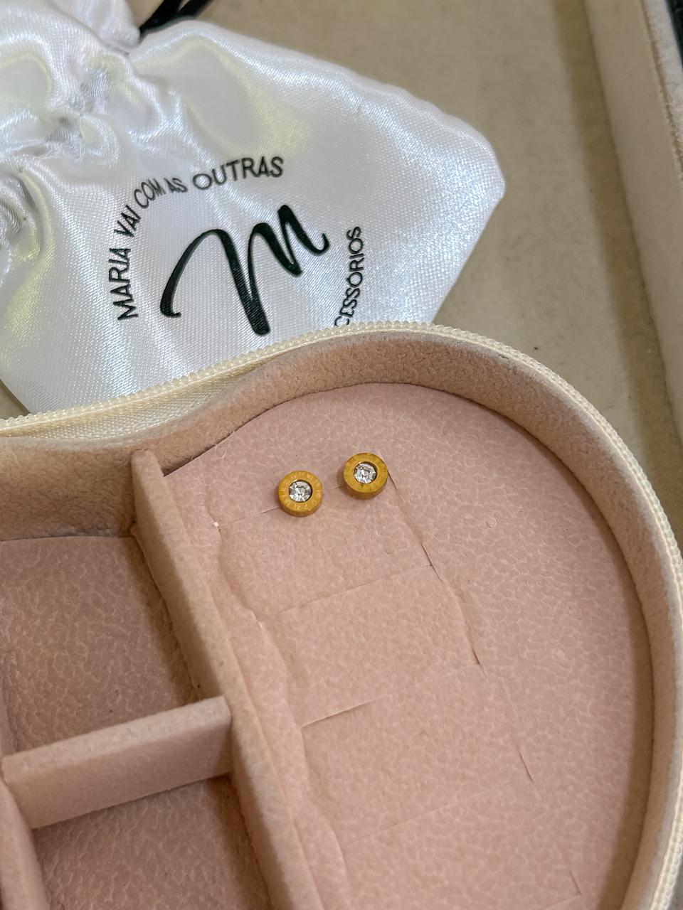 brinco ponto de luz cristal em aço inoxidável dourado.
