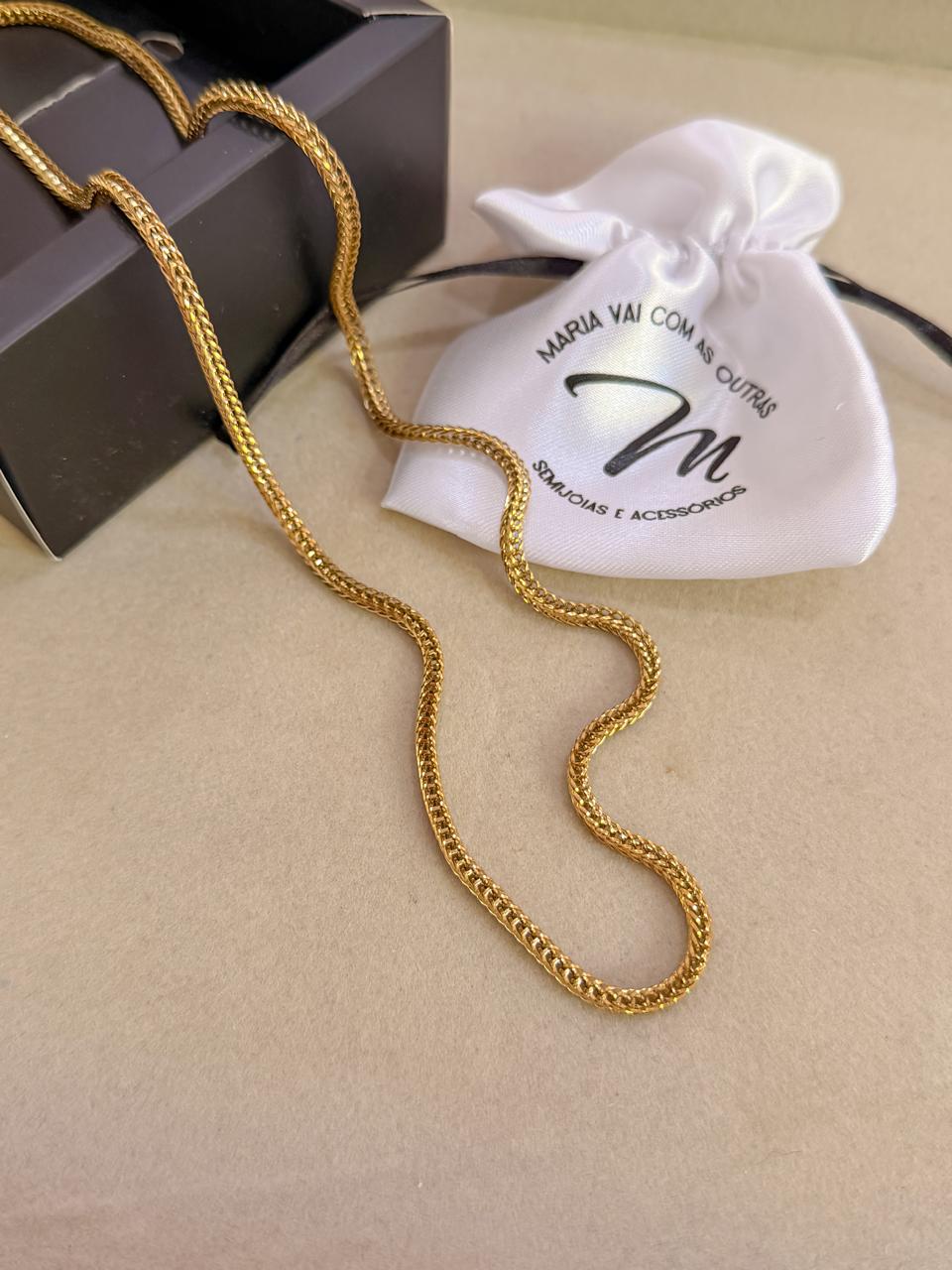 Colar elo lacreia unissex em aço inoxidável dourado com fecho lagosta.