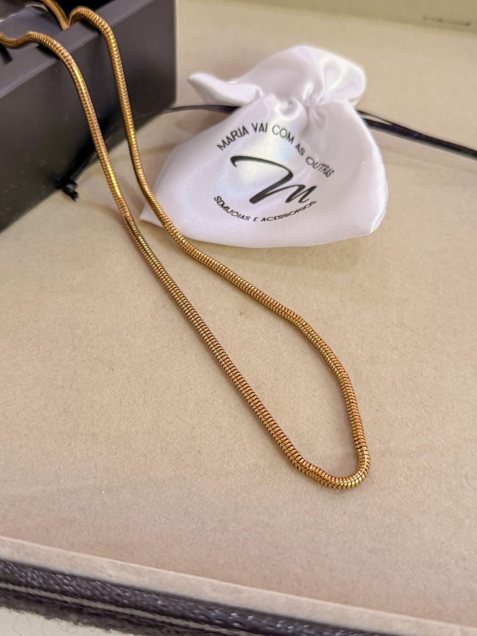 Colar malha rabo de rato liso unissex em aço inoxidável dourado, possui fecho lagosta.