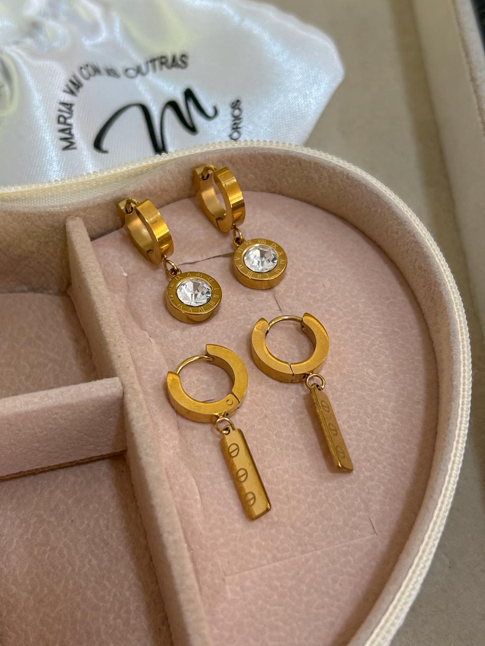 Dupla de brinco argolinha articulada inspiração em aço inoxidável dourado.