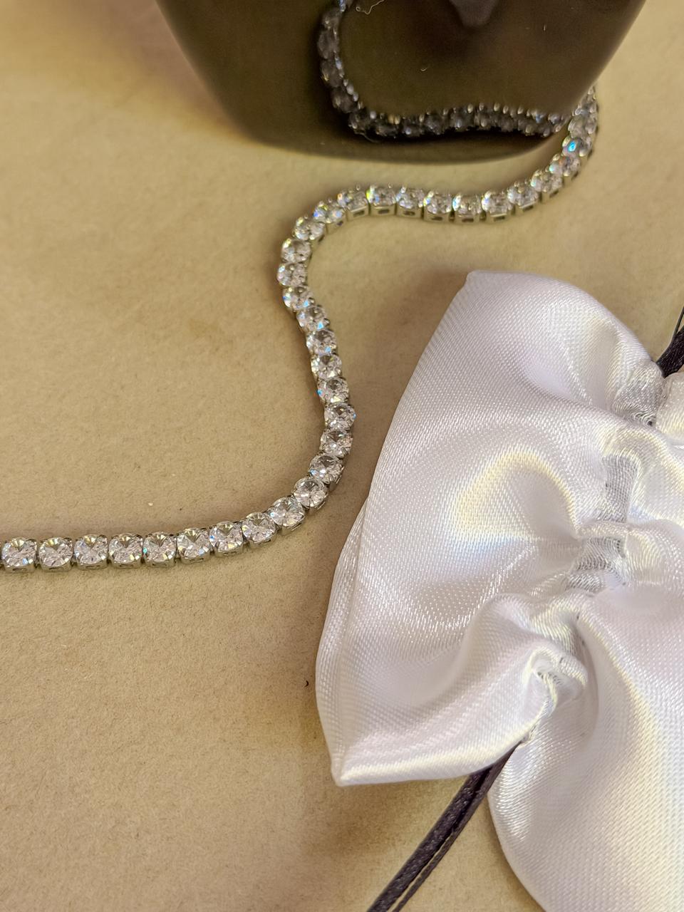 Pulseira riviera cristal em aço inoxidável prata com extensor.