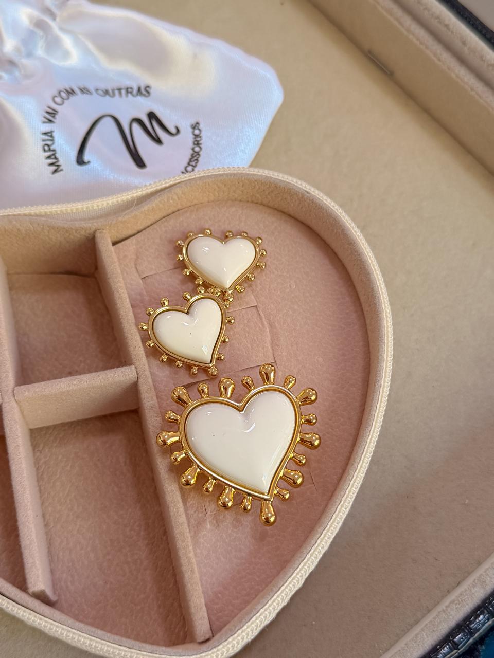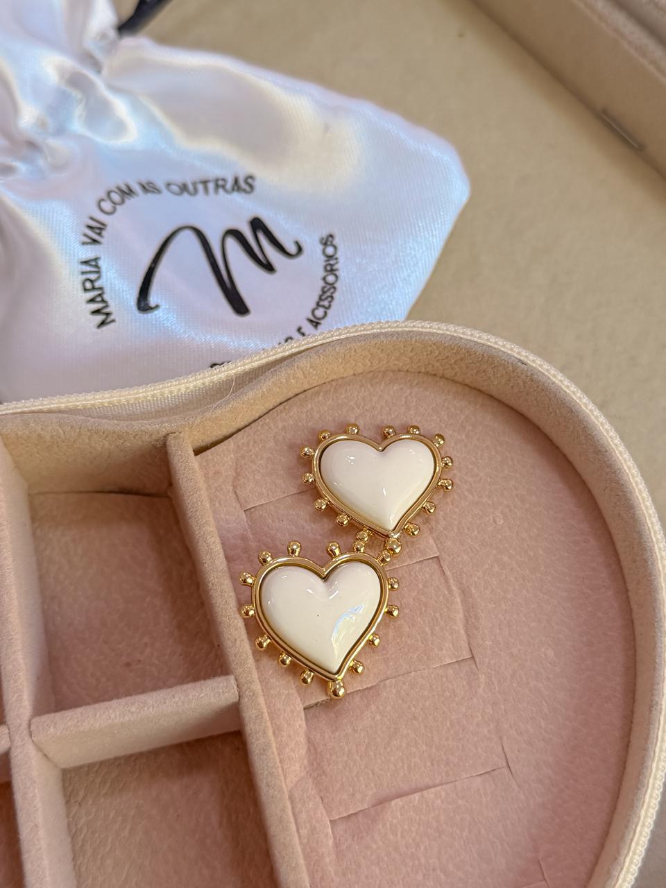 Anel coração coração ajustável branco com base dourada em verniz italiano;