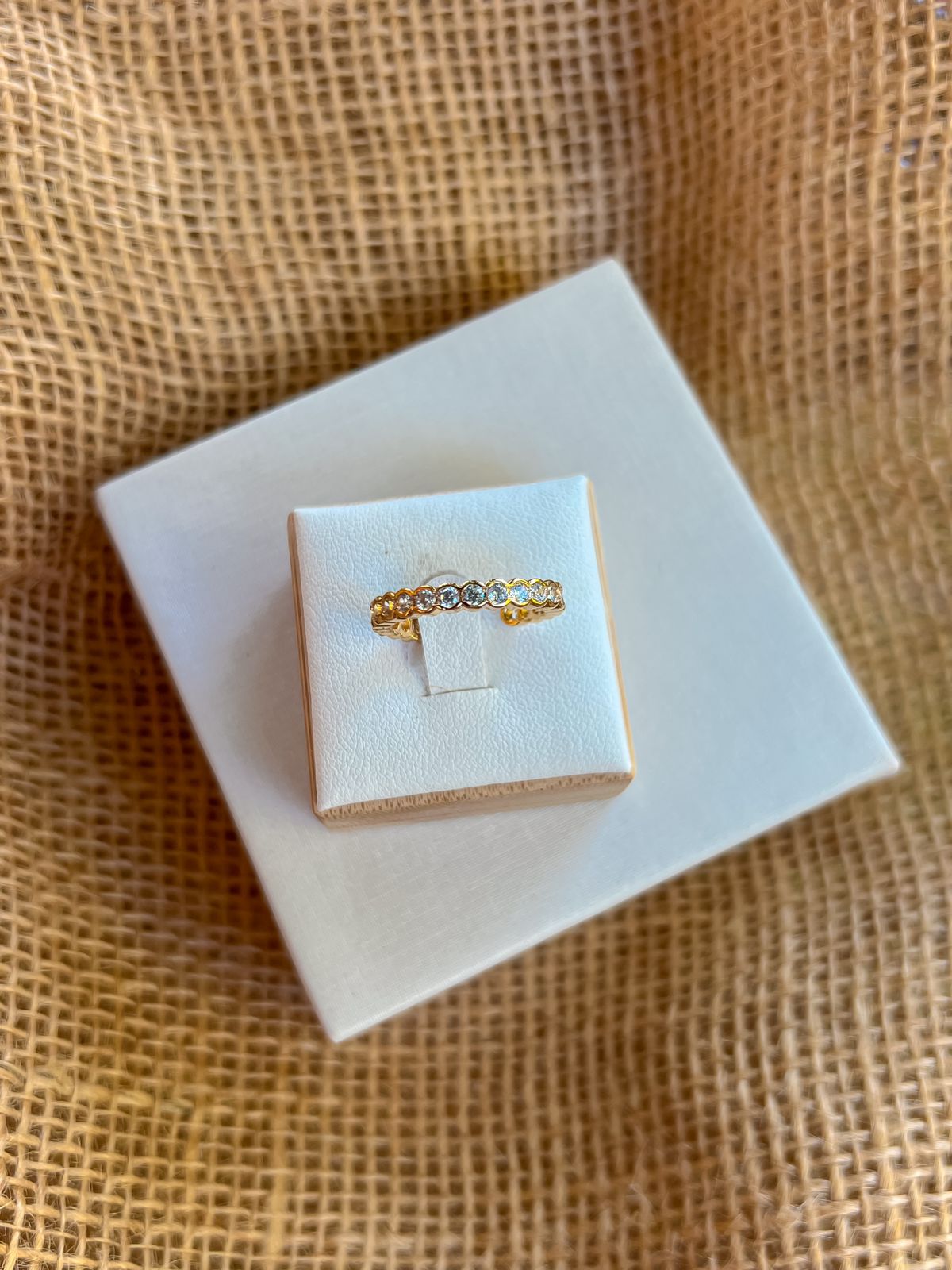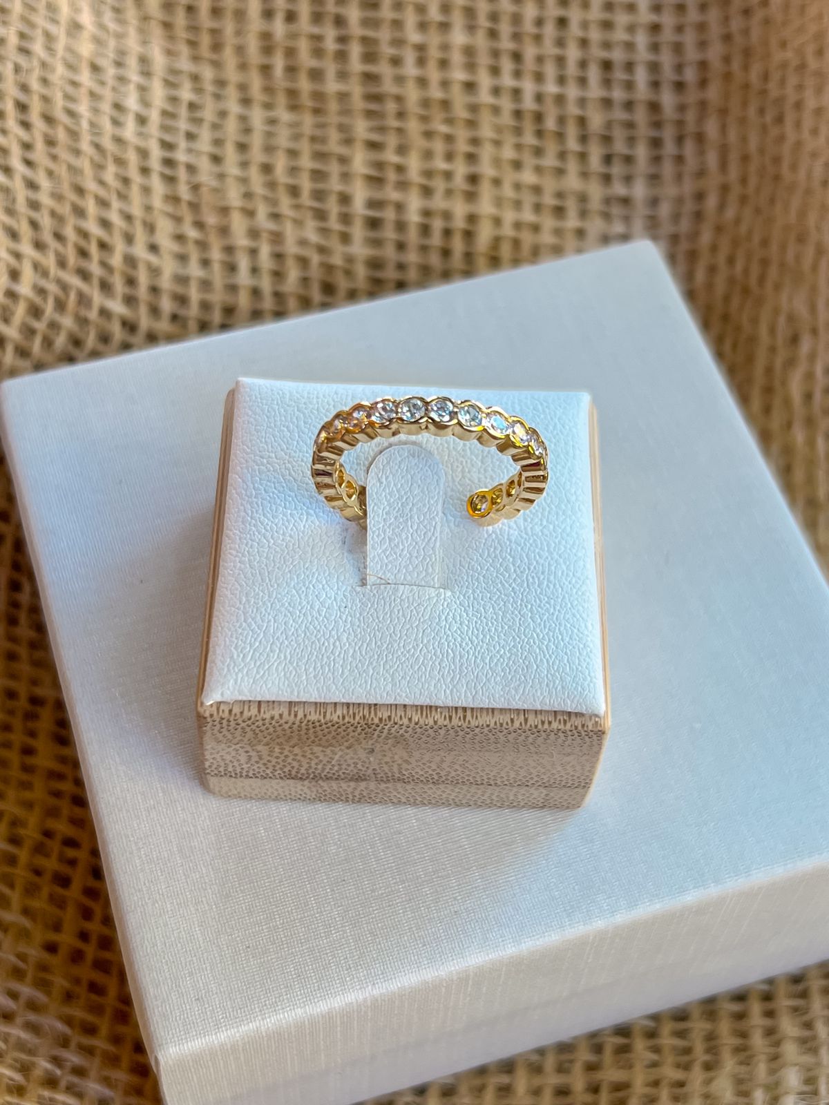 Anel zircônia cristal ajustável semijoia banhado em ouro 18k;