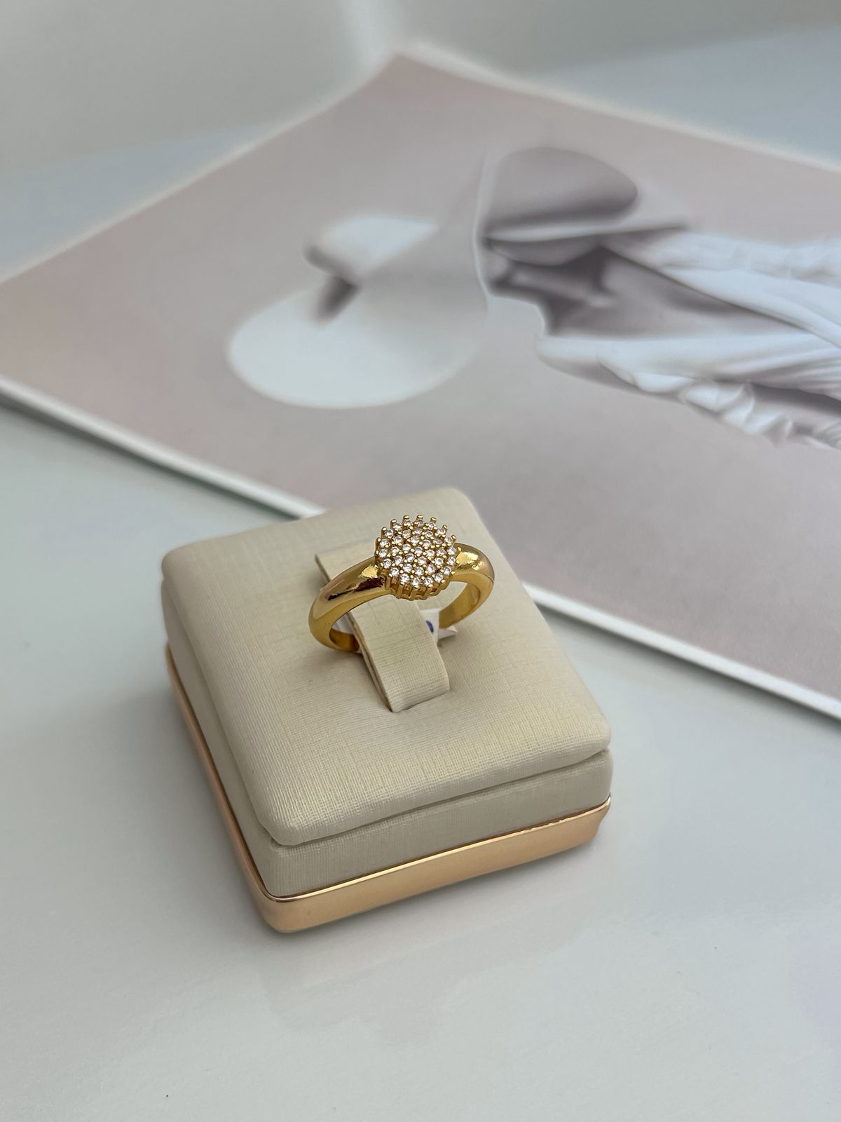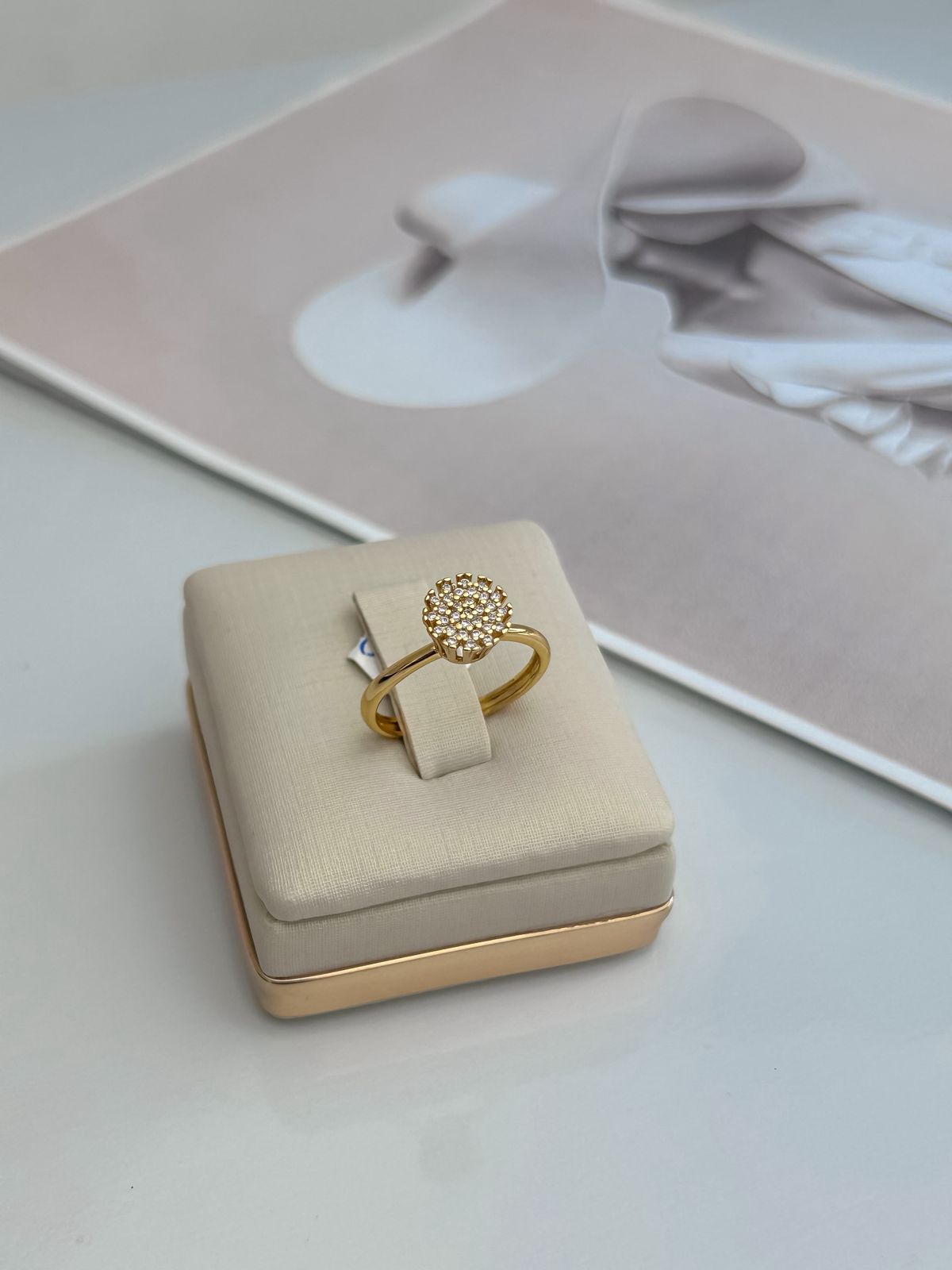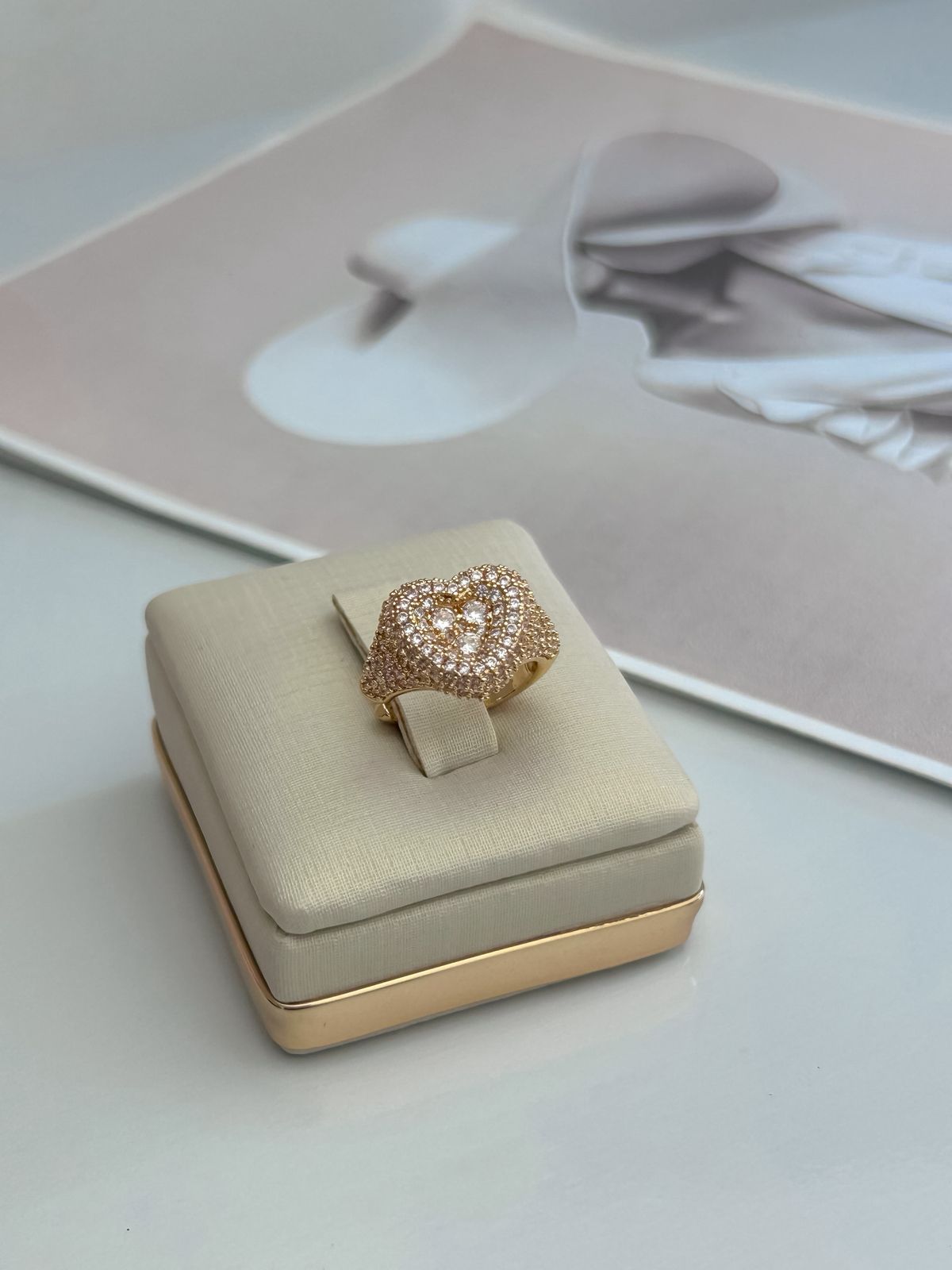 Anel de coração cravejado ajustável banhado em ouro 18k;