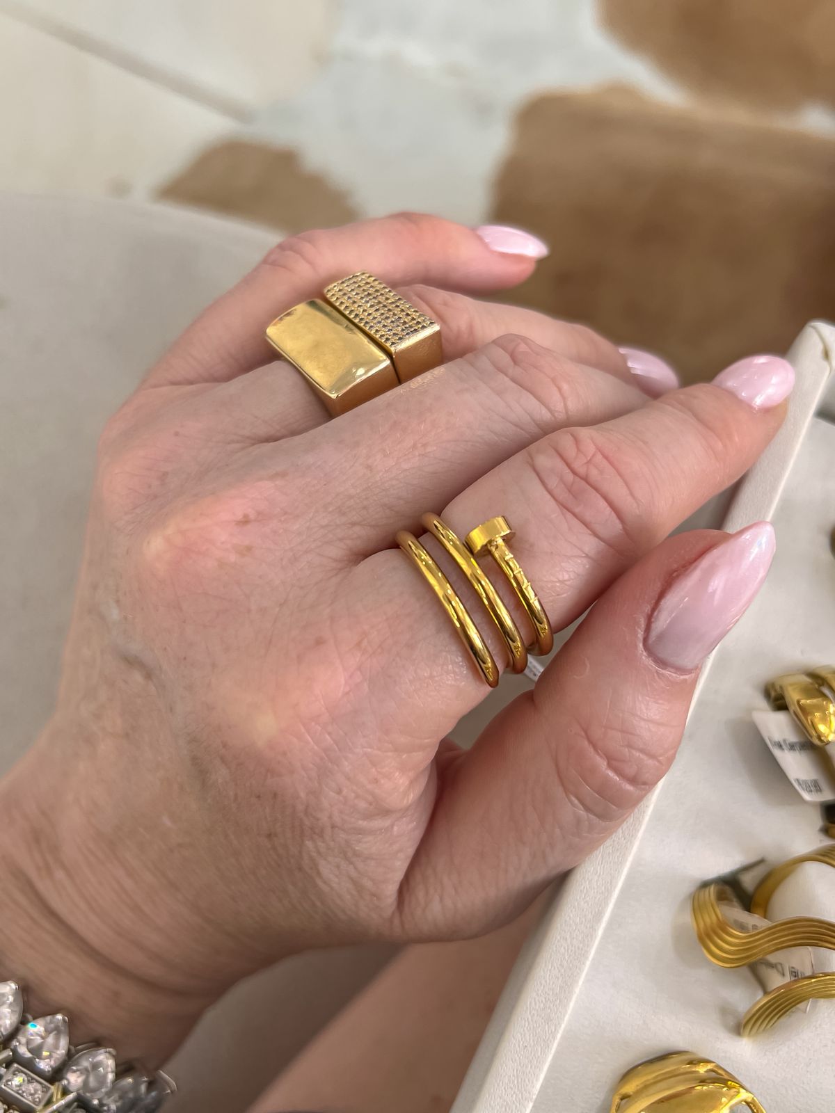 Anel prego enrolado em aço inoxidável no dourado;