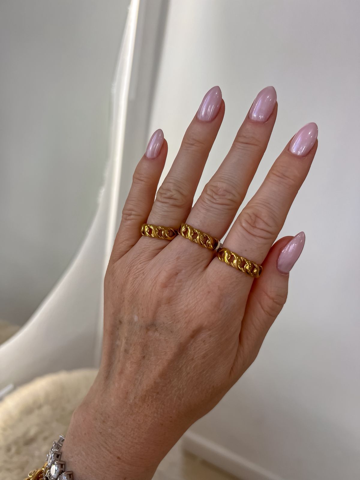 Anel trançado em aço inoxidável no dourado;