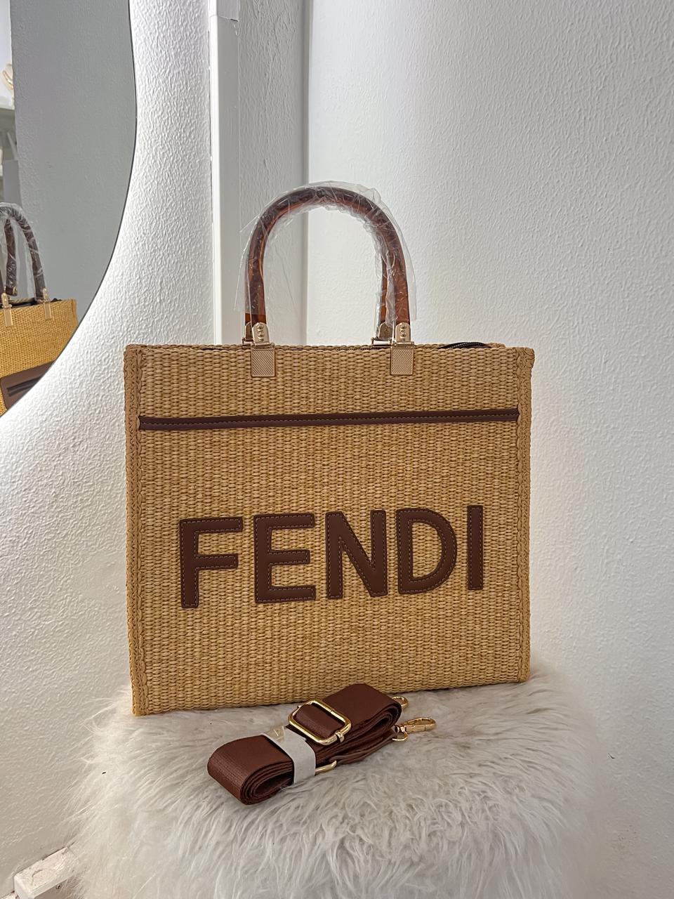 Bolsa de palha inspiração fendi com alça acrílica, possui alça transversal.