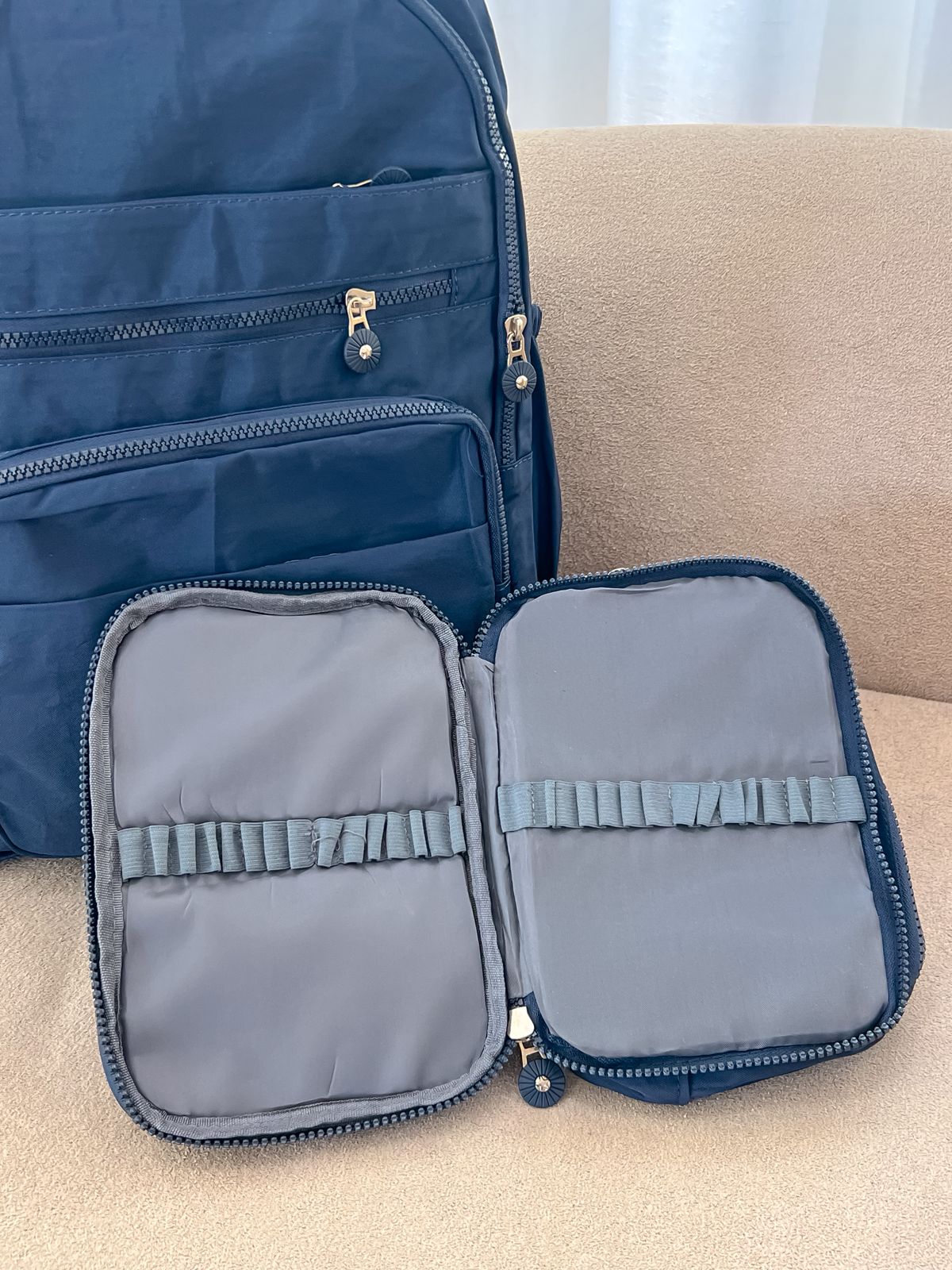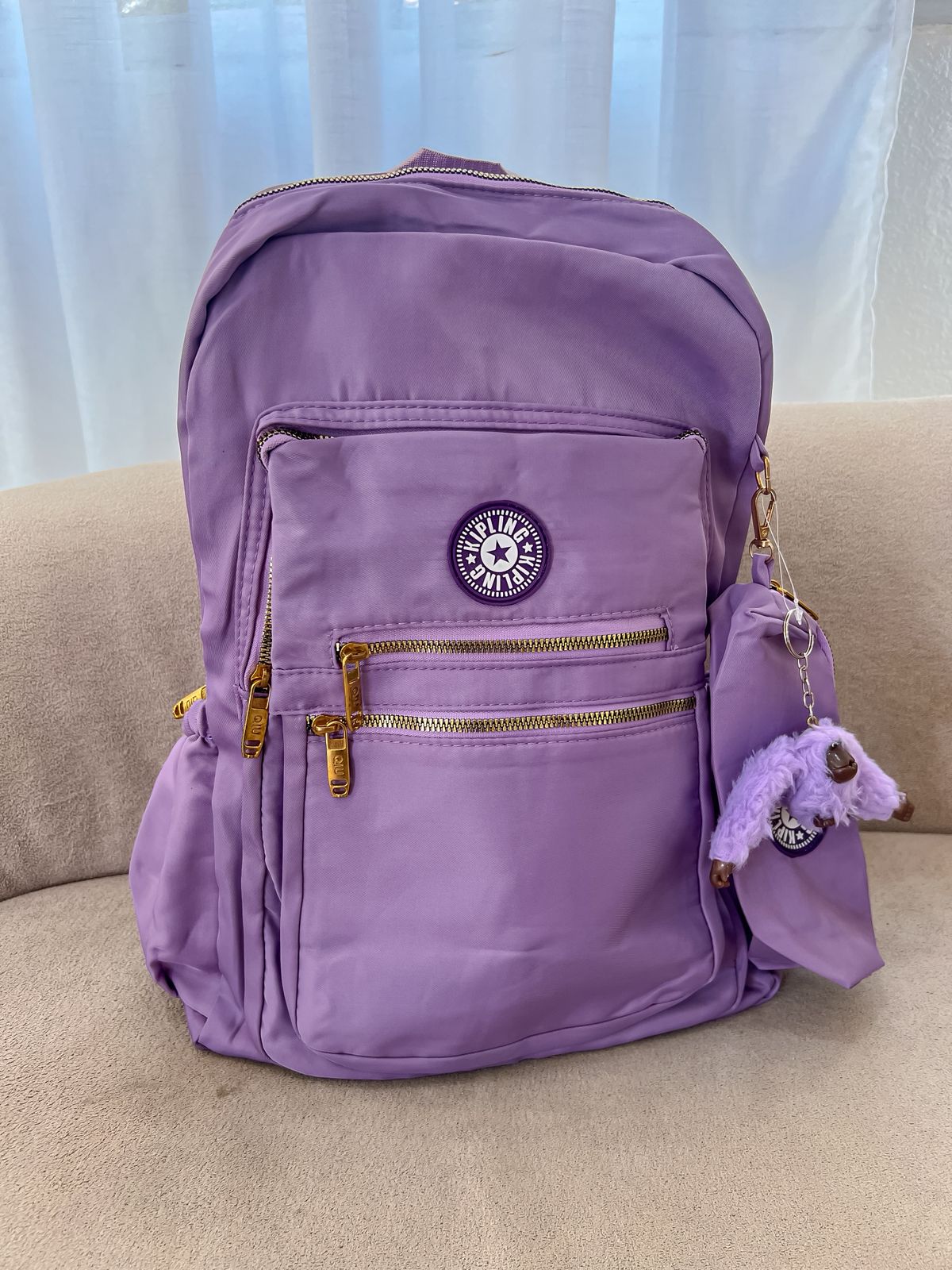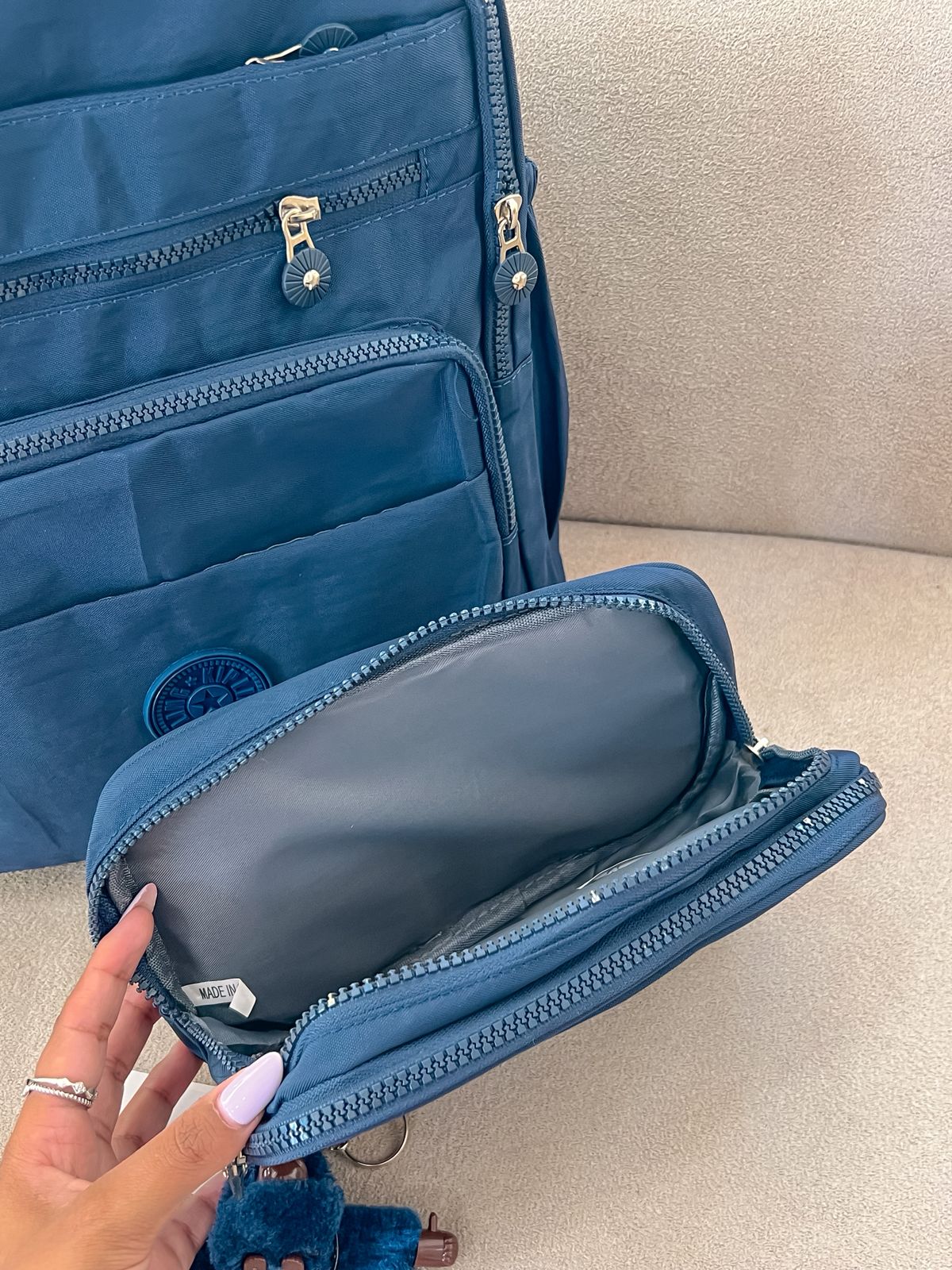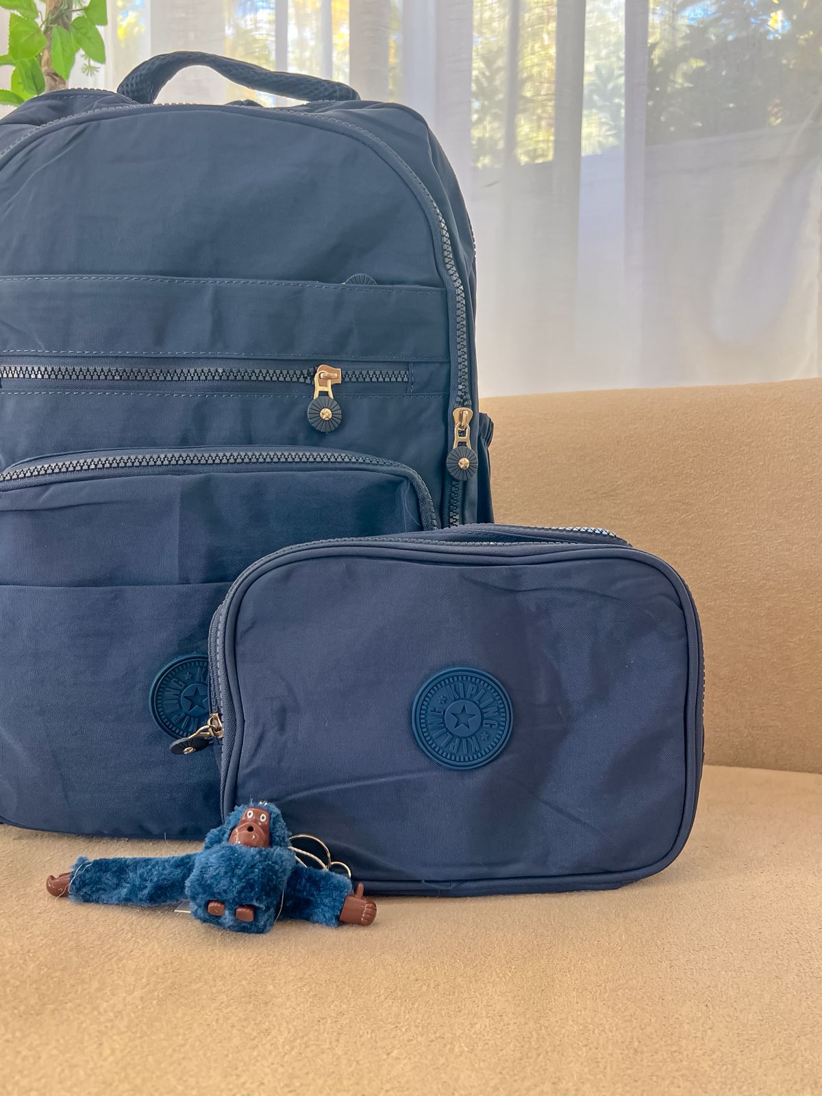 Kit Kipling mochila + estojo box azul escuto impermeável.
