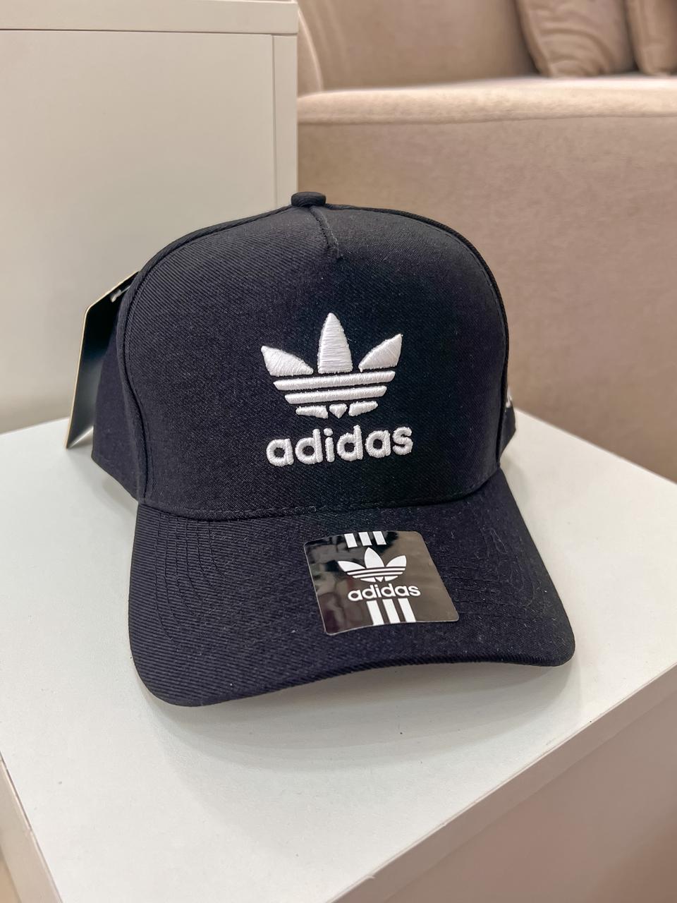 Boné adidas preto com símbolo branco.