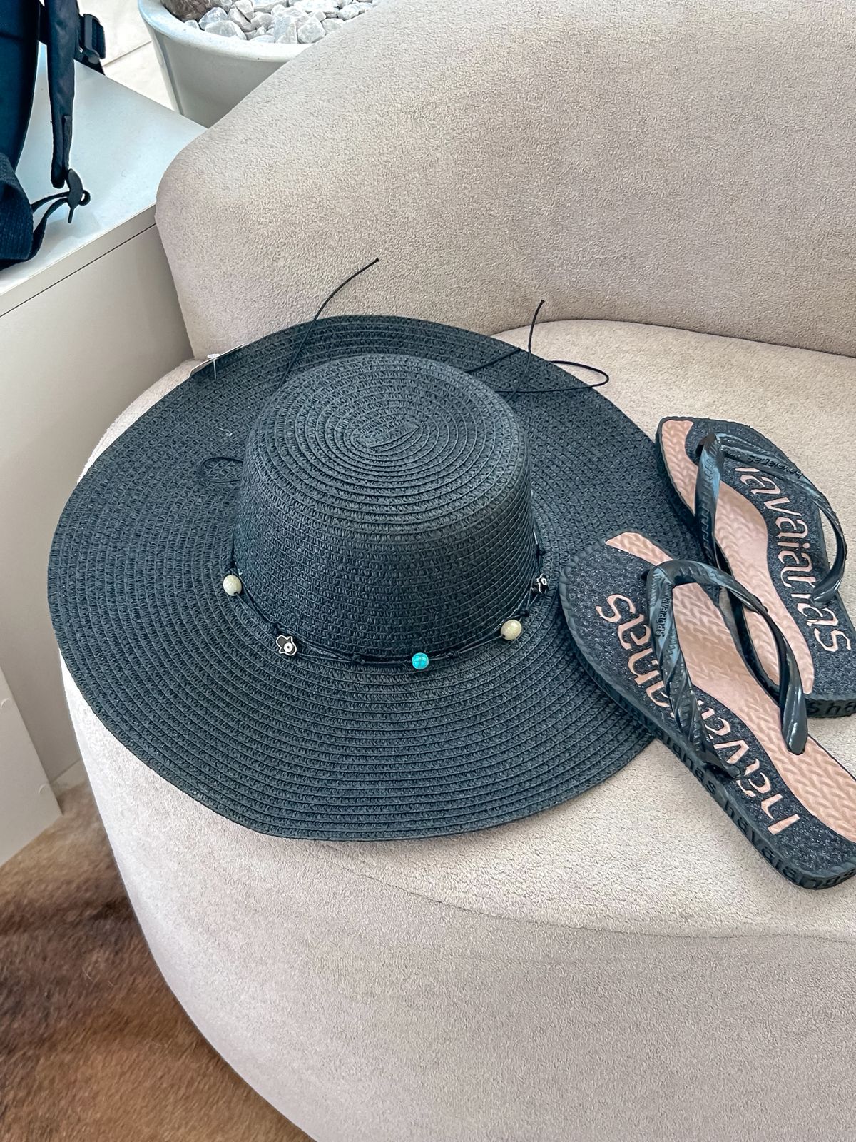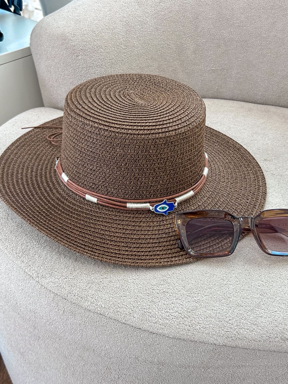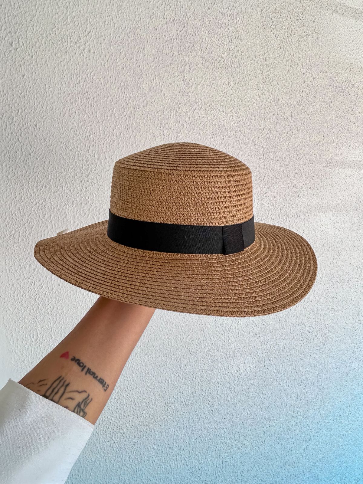 Chapéu de palha Marshall na cor caramelo com faixa preta;