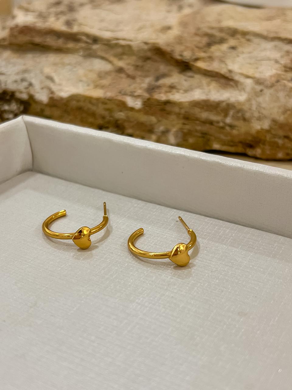 Brinco argola com coração liso em aço inoxidável no dourado.