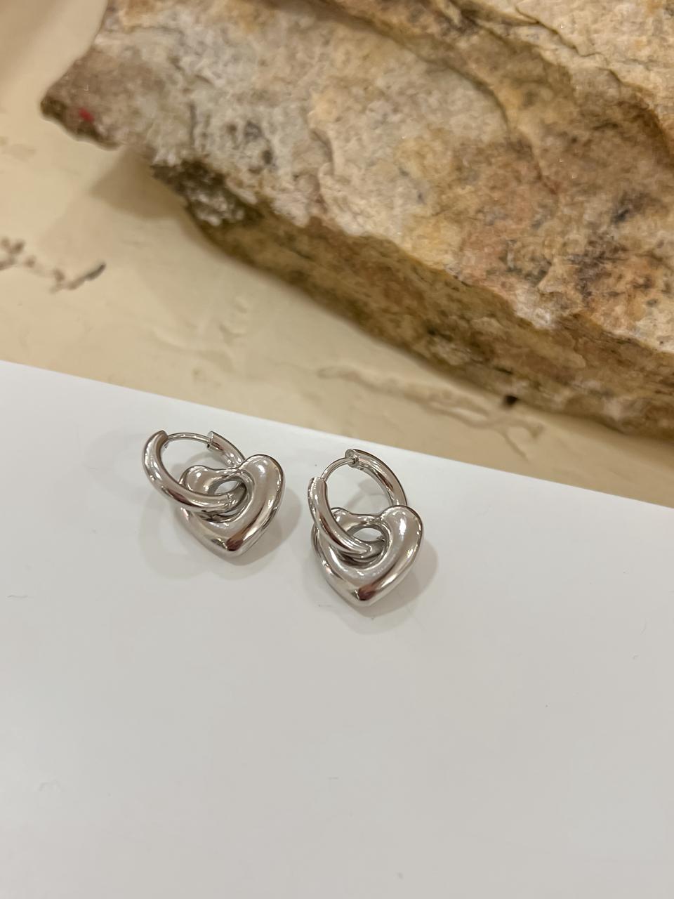 Argola lisa com pingente de coração em aço inoxidável no prata.