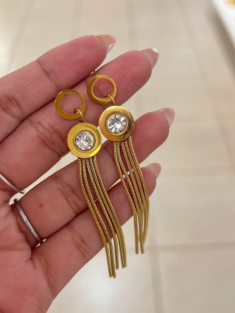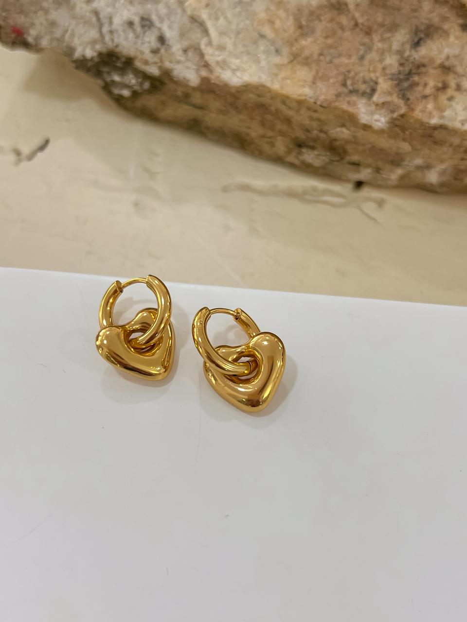 Argola lisa com pingente de coração em aço inoxidável no dourado.