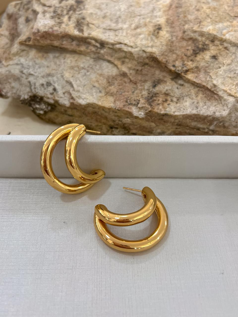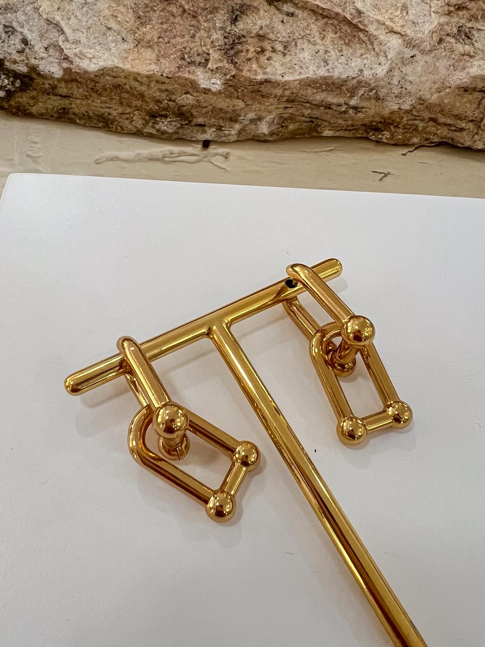 Brinco detalhe em aço inoxidável no dourado.