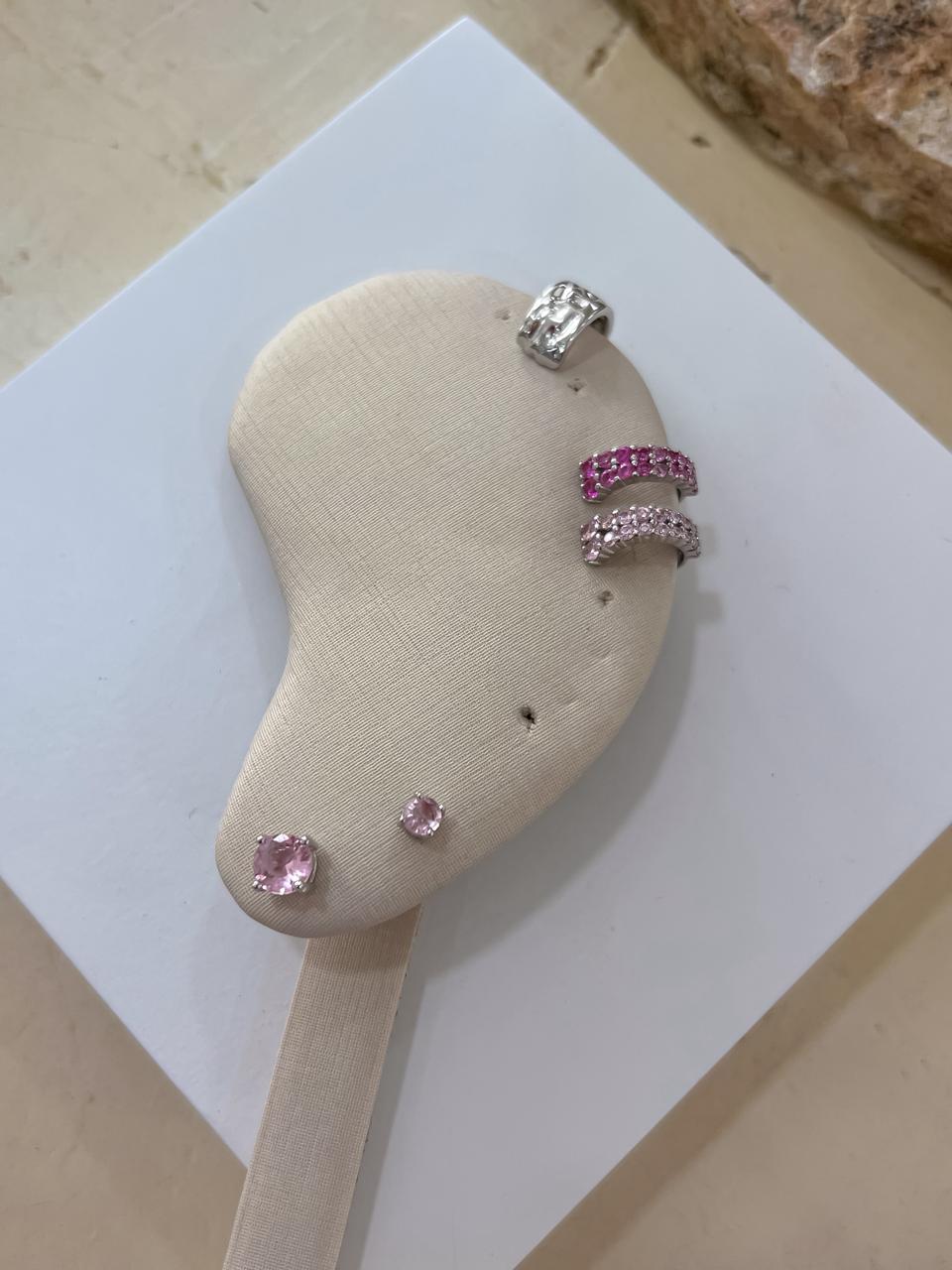 Brinco dupla rosa claro banhado em ouro branco;