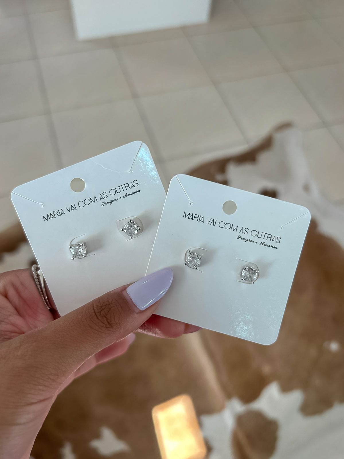 Brinco ponto de luz banhado em ouro branco;