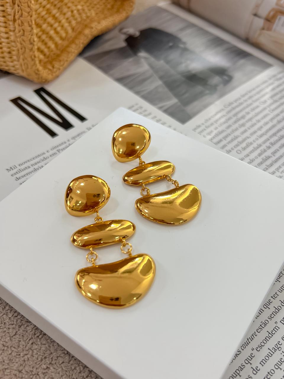 Brinco trio liso em aço inoxidável no dourado.
