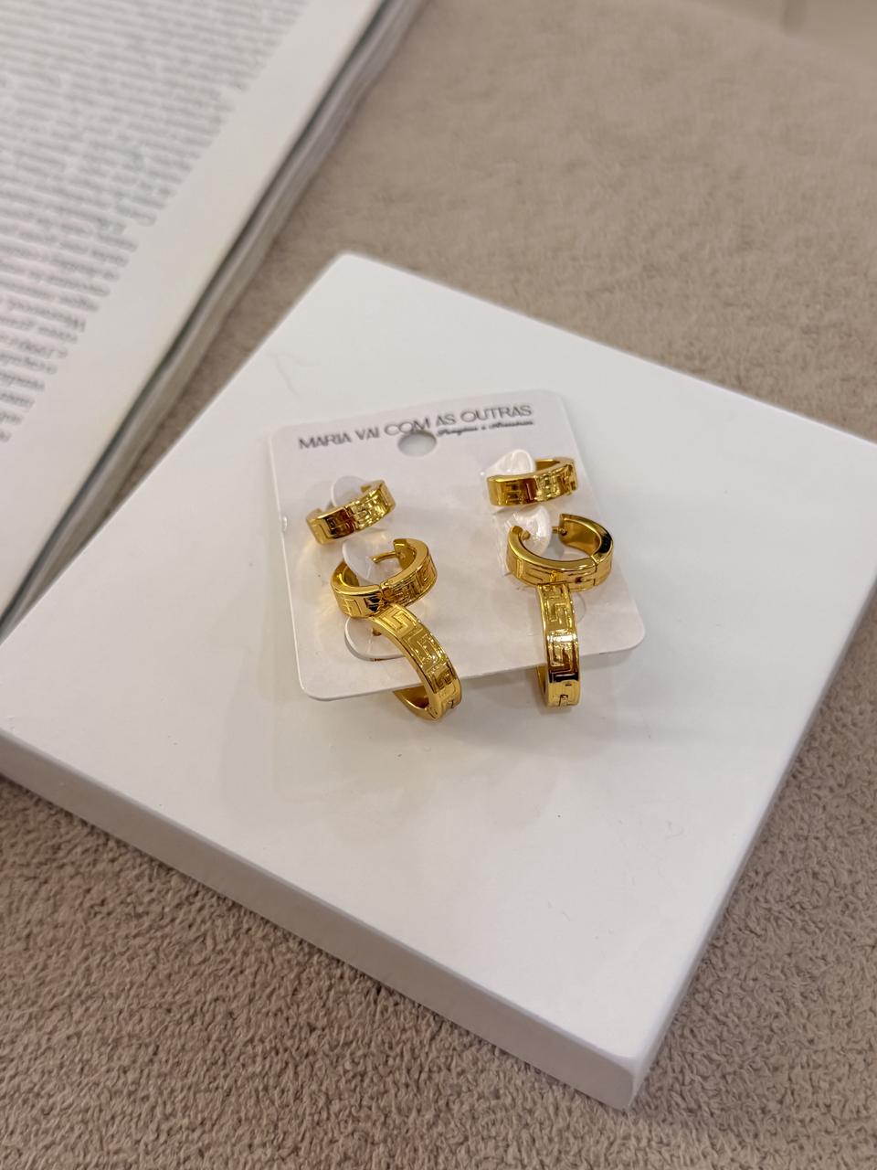 Trio de argolas em aço inoxidável no dourado.