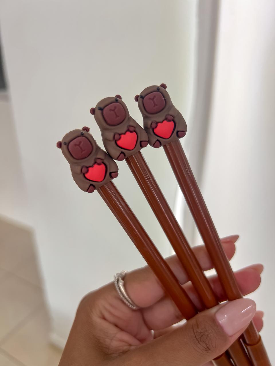 Canetas temática do personagem capivara marrom;
