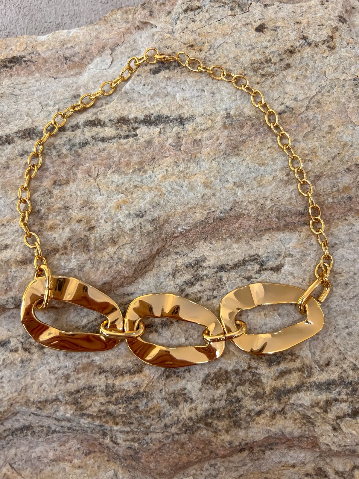 Choker orgânica com extensor em aço inoxidável no dourado.