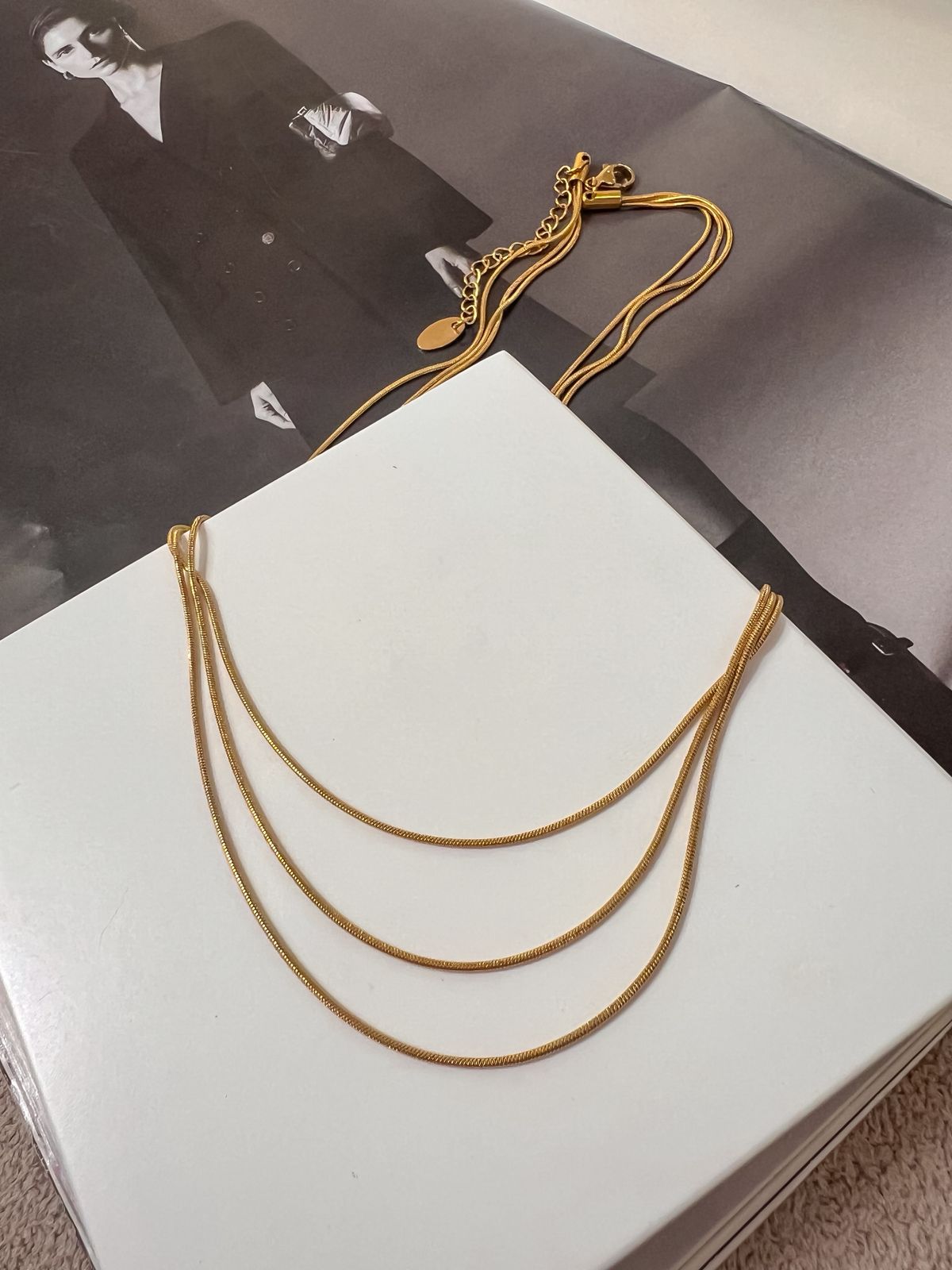 Choker trio fio em aço inoxidável no dourado, possui extensor.
