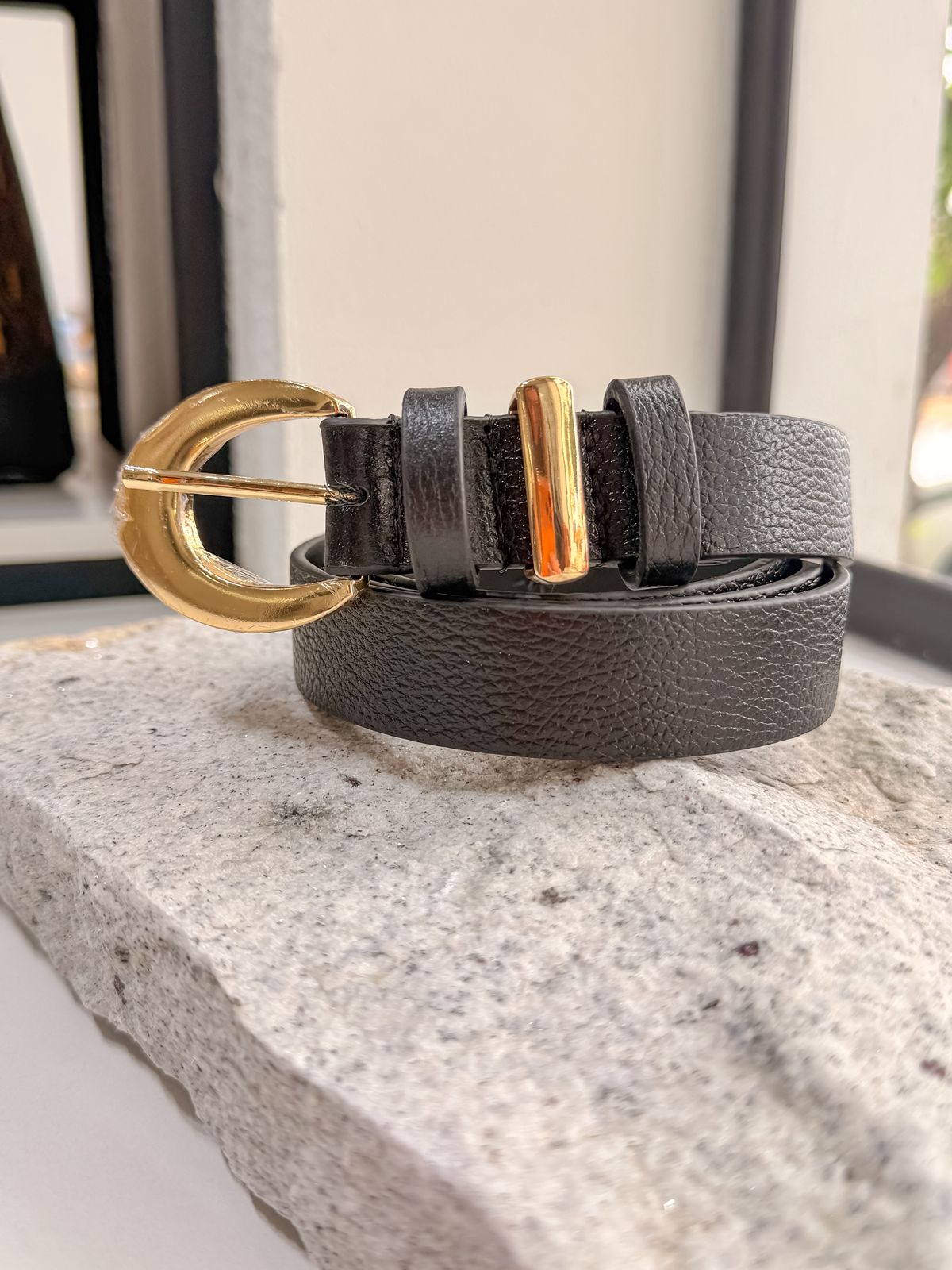 Cinto 100% couro legitimo vermelho com fivela oval em metal dourado.