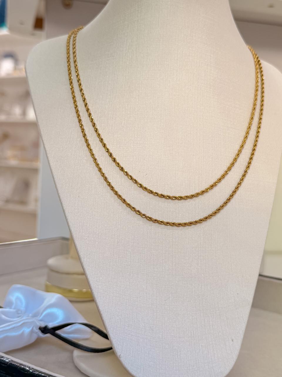 Colar correntaria trio todo um fecho só em verniz italiano dourado, possui extensor.