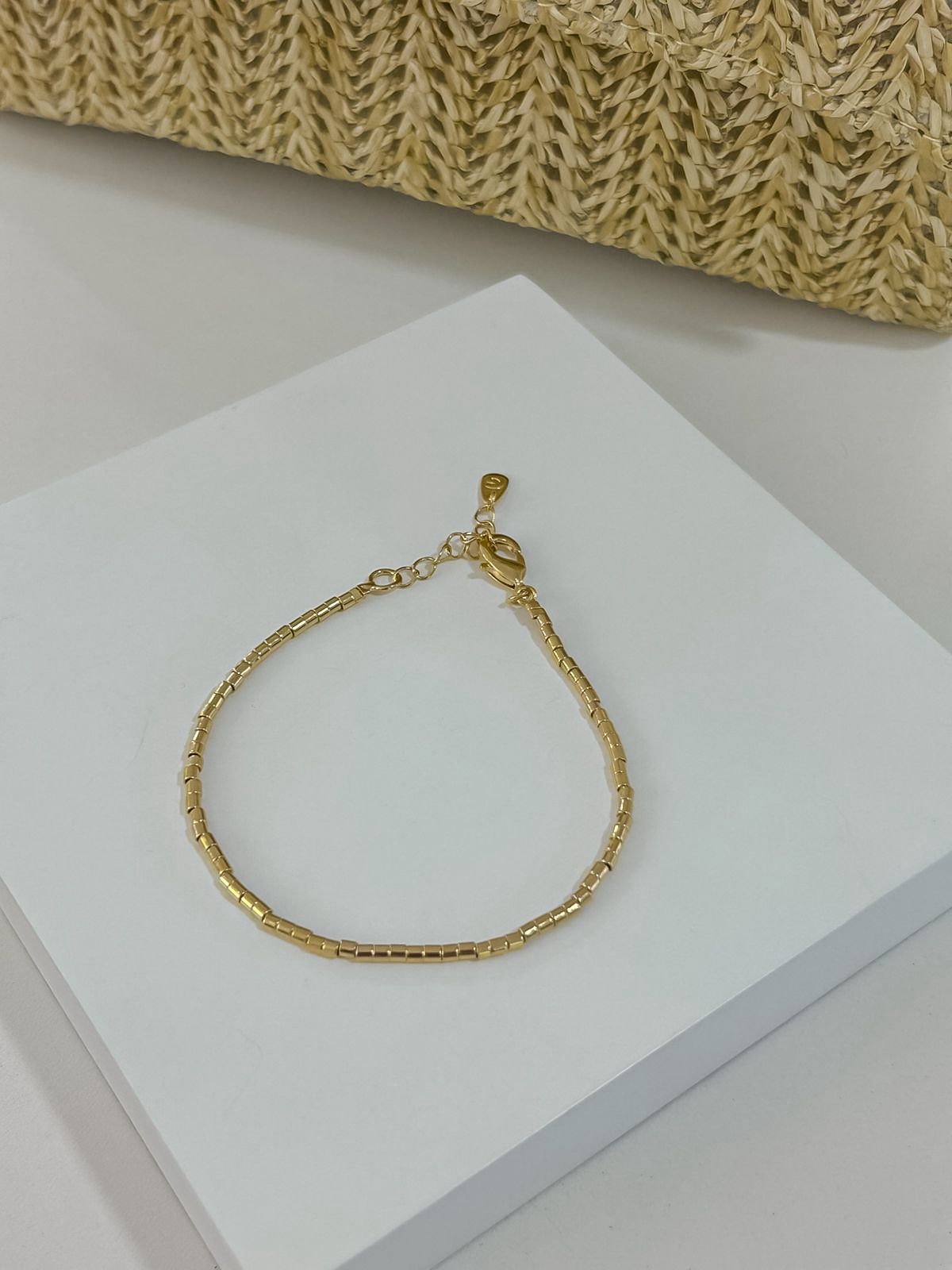 Conjunto fita + brinco esfera em aço inoxidável no dourado com extensor.