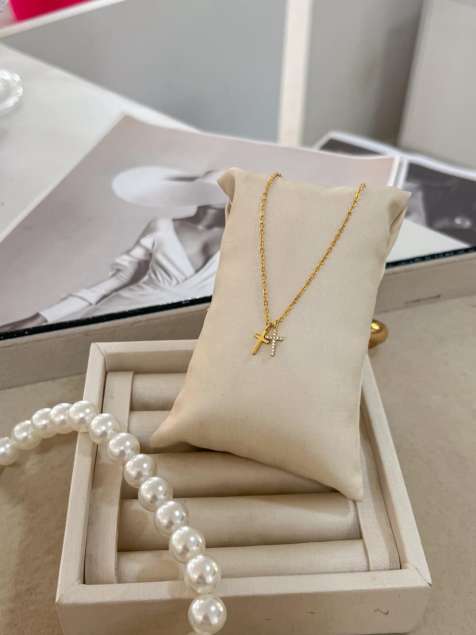 Escapulário zircônia feminino banhado em ouro 18k;