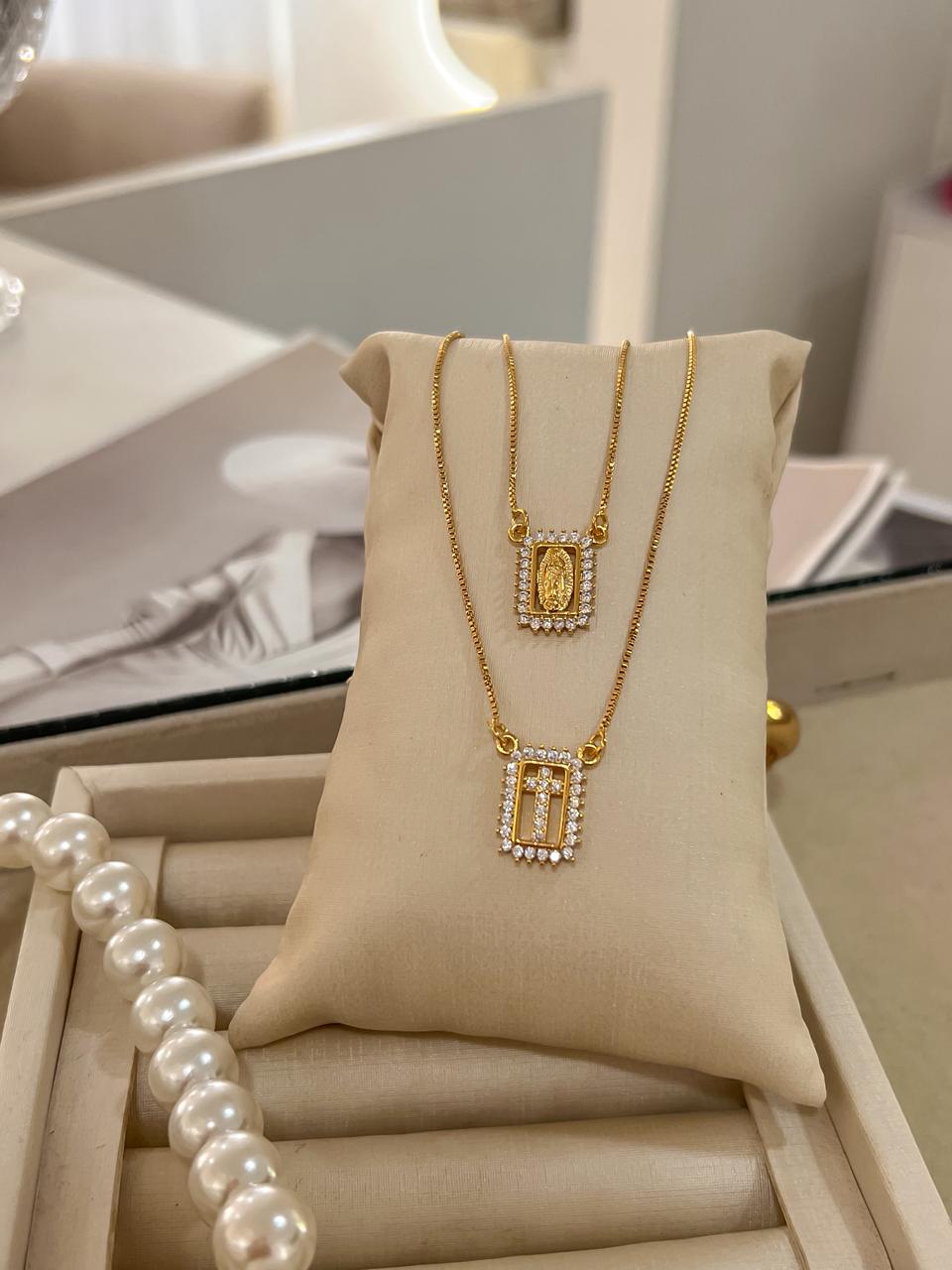 Escapulário zircônia feminino banhado em ouro 18k;