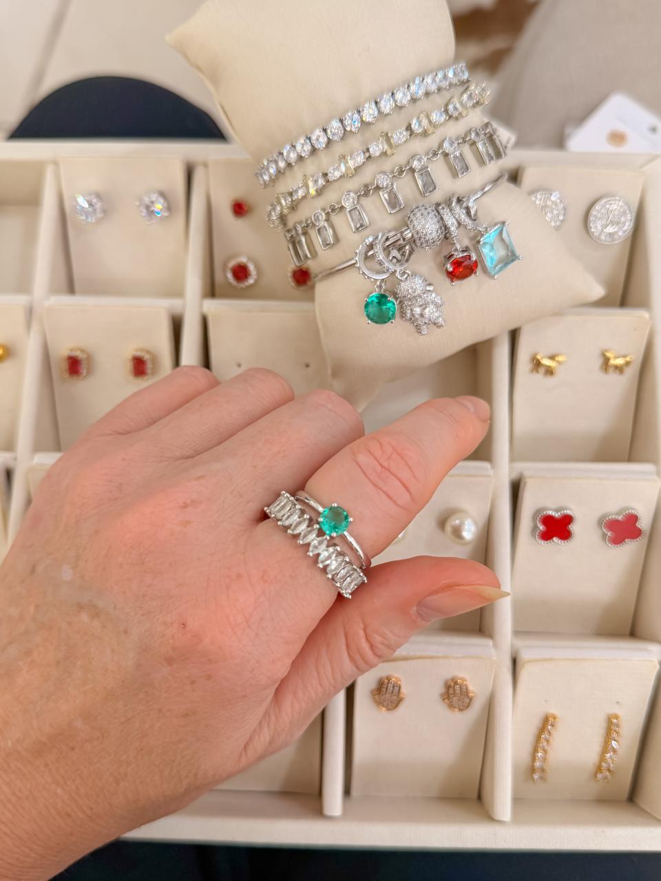 Anel solitário Turmalina banhado em ouro branco;