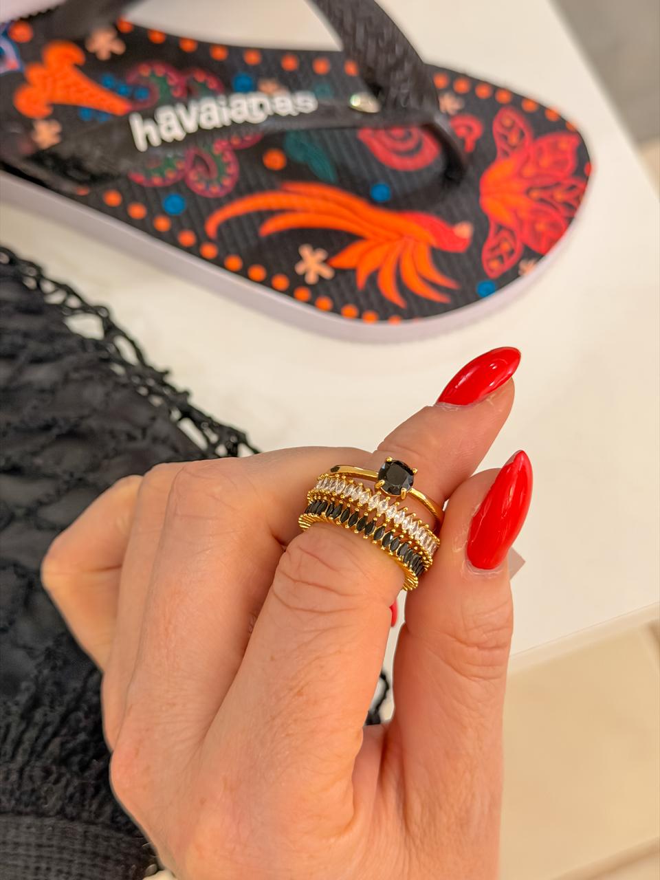 Anel solitário Onix banhado em ouro amarelo 18k;