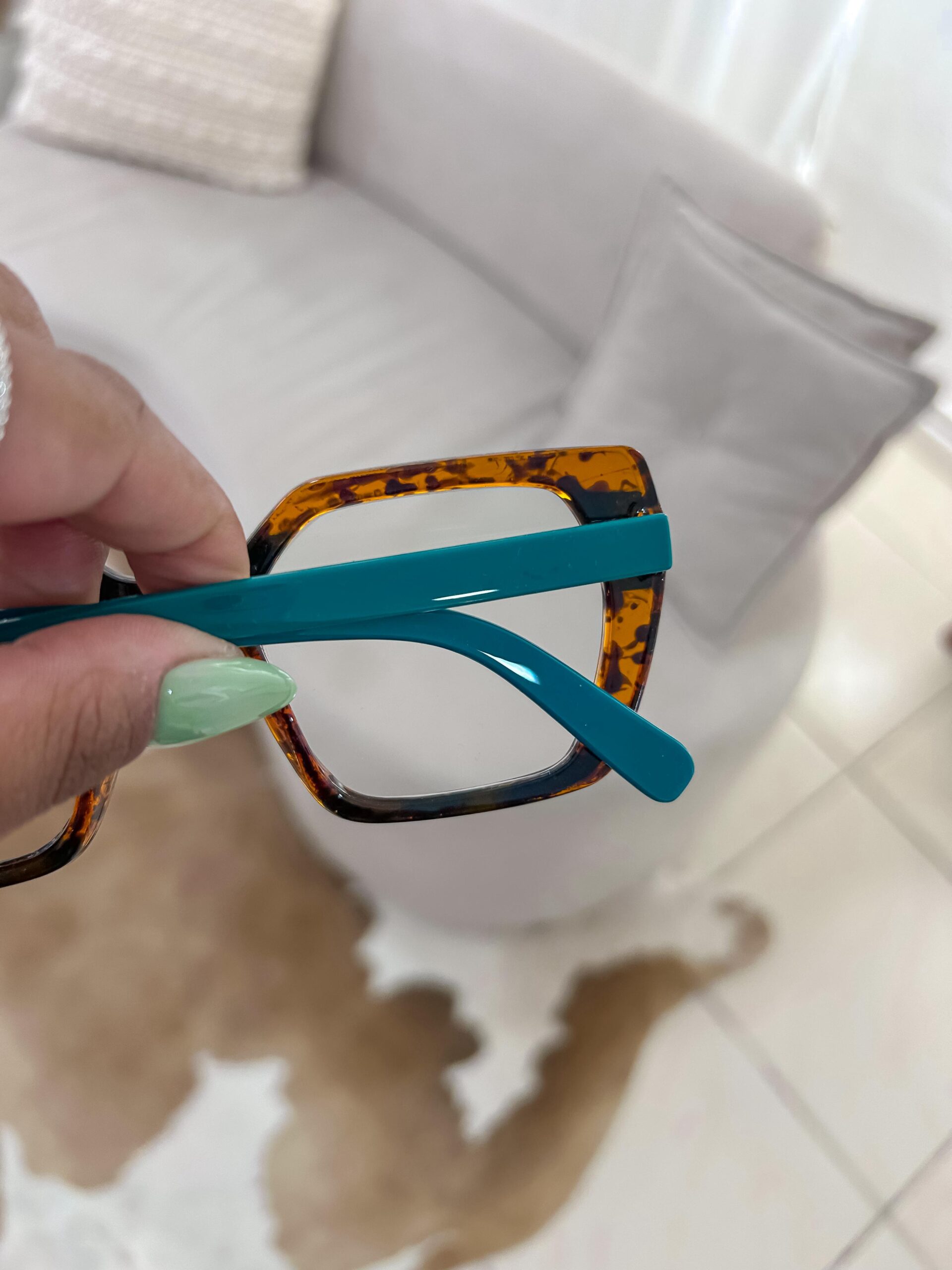 Armação de óculos em verde com animal print;