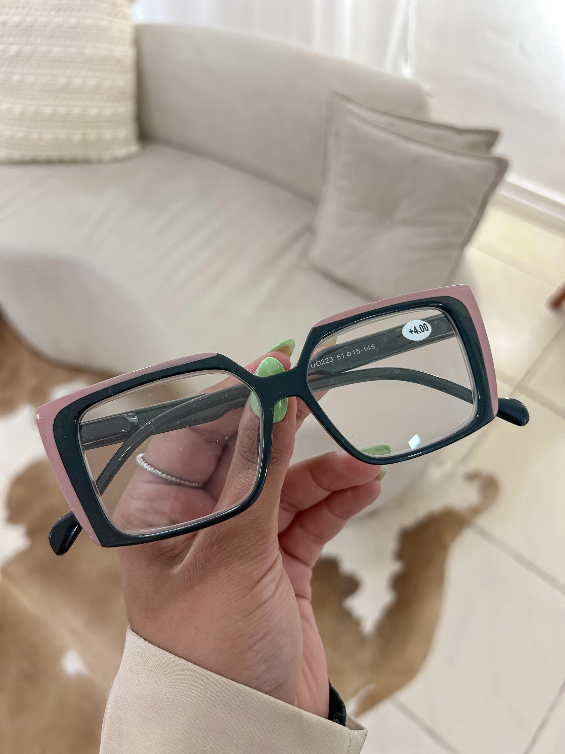 Com lente de grau +4,00.