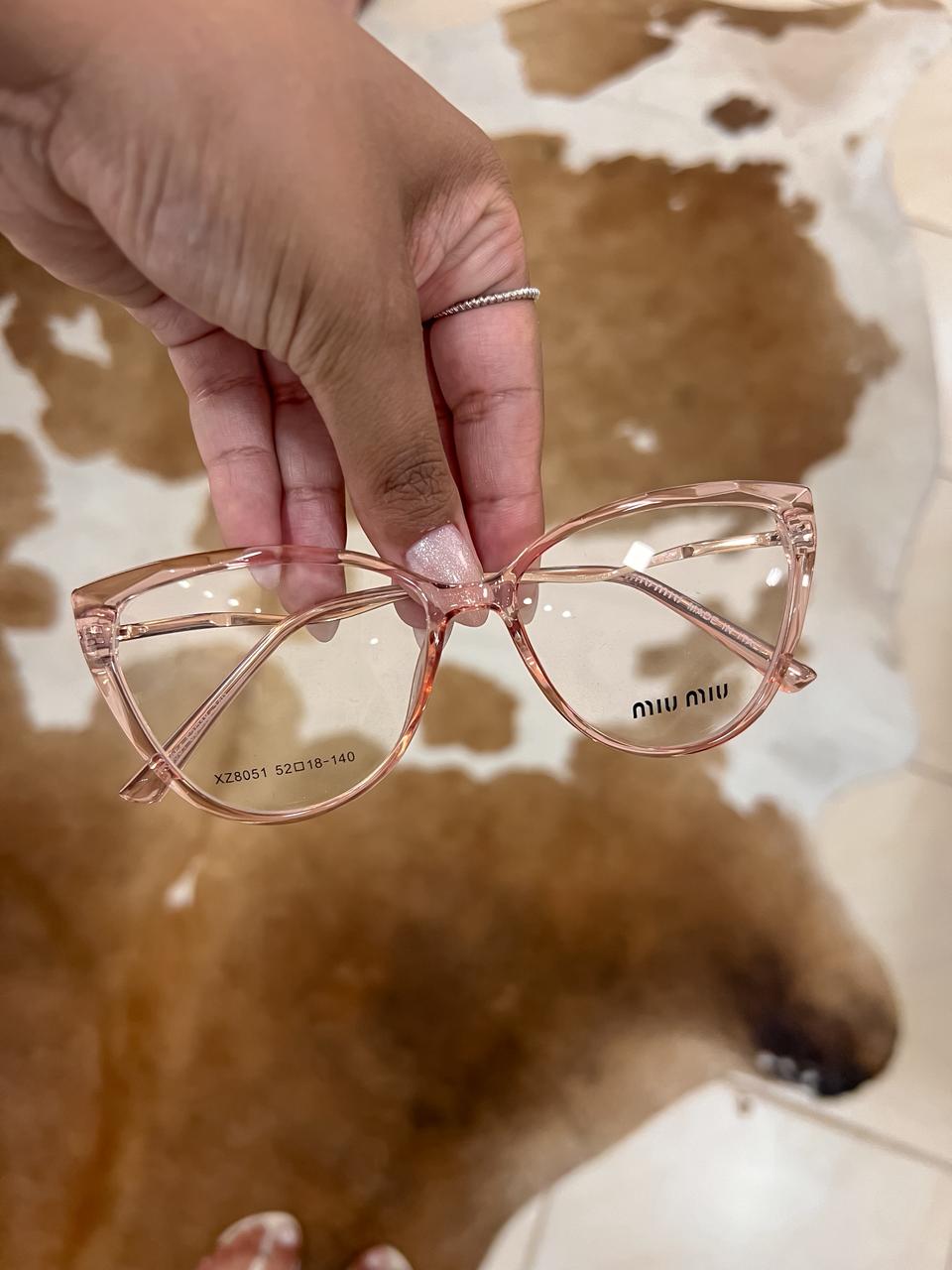 Armação de óculos inspiração miu miu na cor salmão;