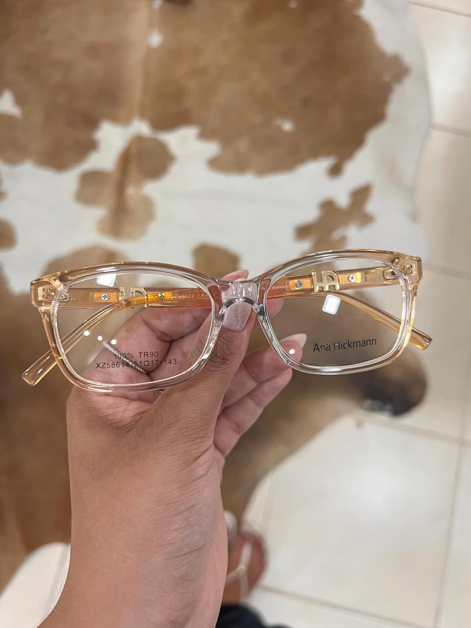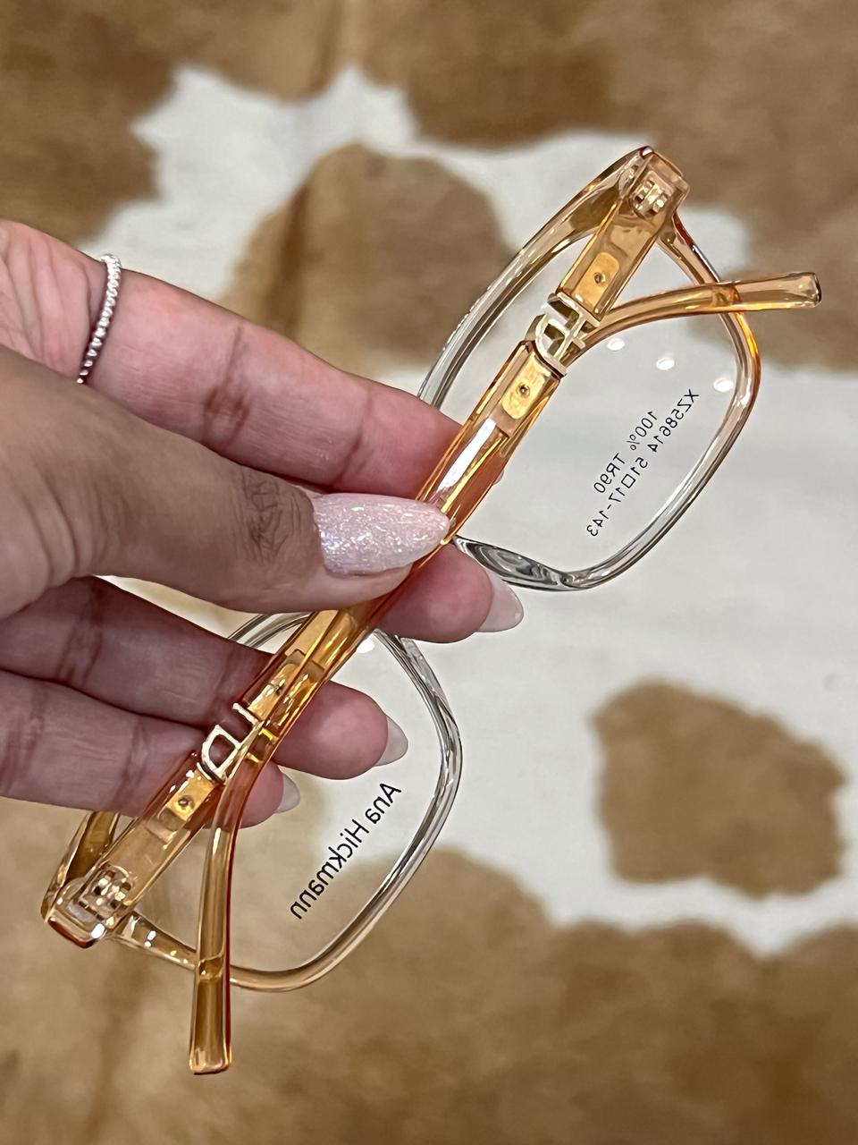 Armação de óculos quadrada com laranja inspiração Ana hickmann.