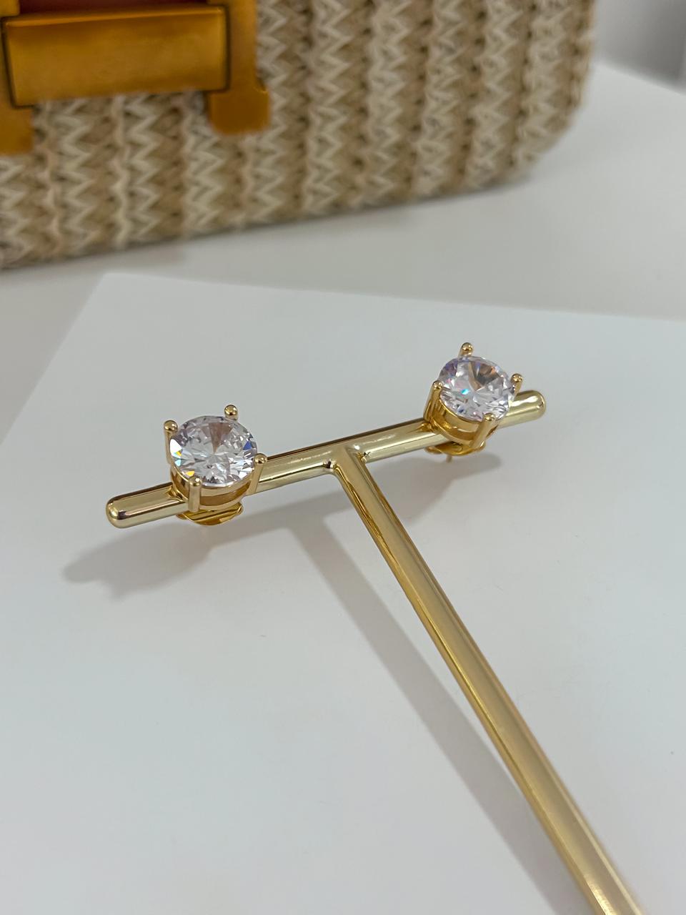 Brinco ponto de luz tam.GG cristal banho em ouro amarelo 18k;