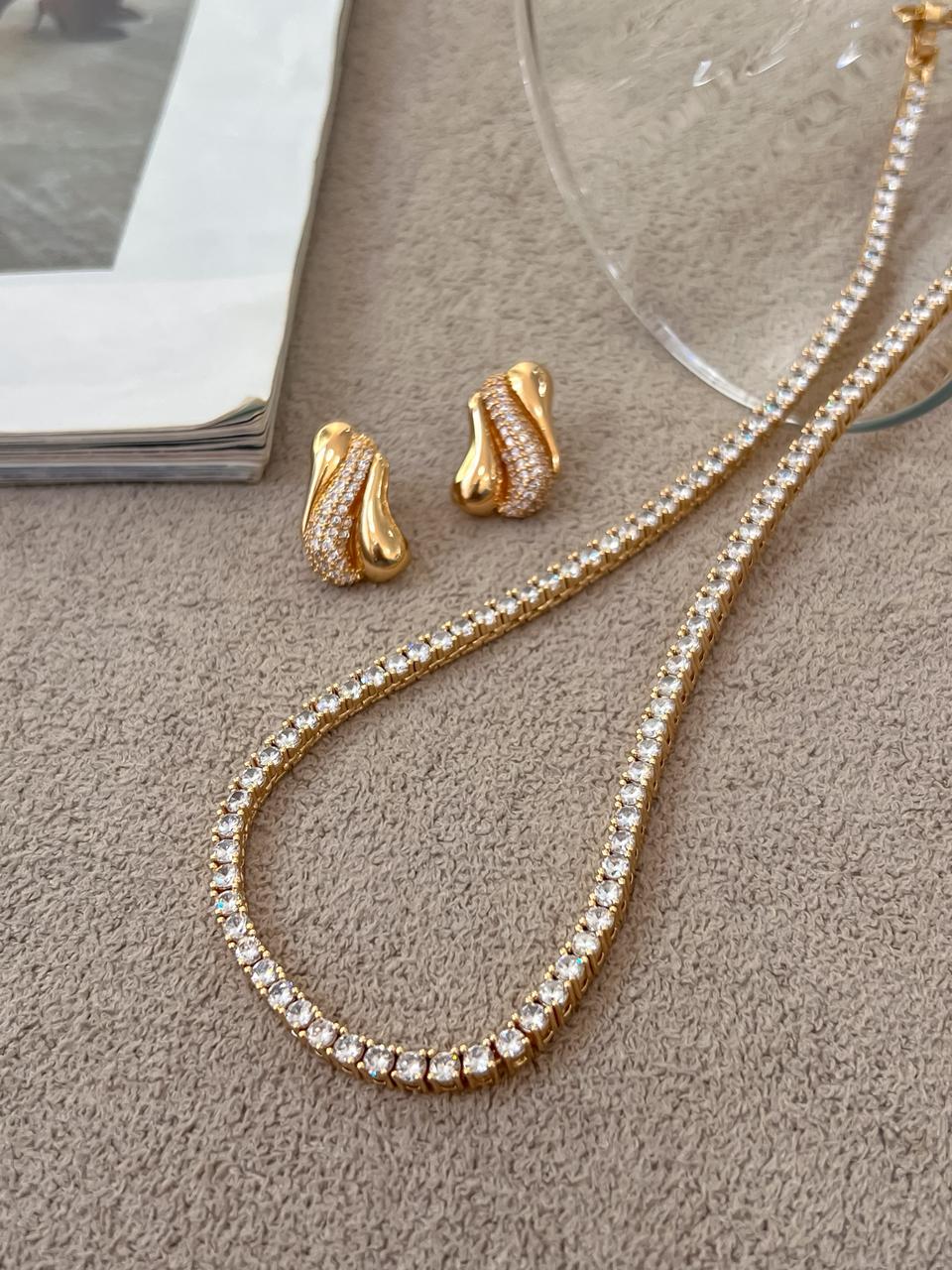 Choker Riviera Confeccionado em Banho Ouro Amarelo de 18K;