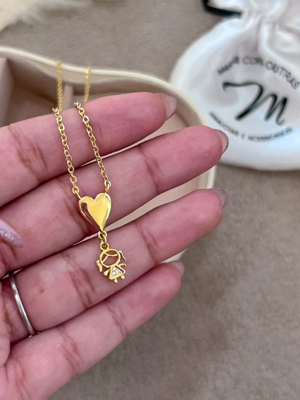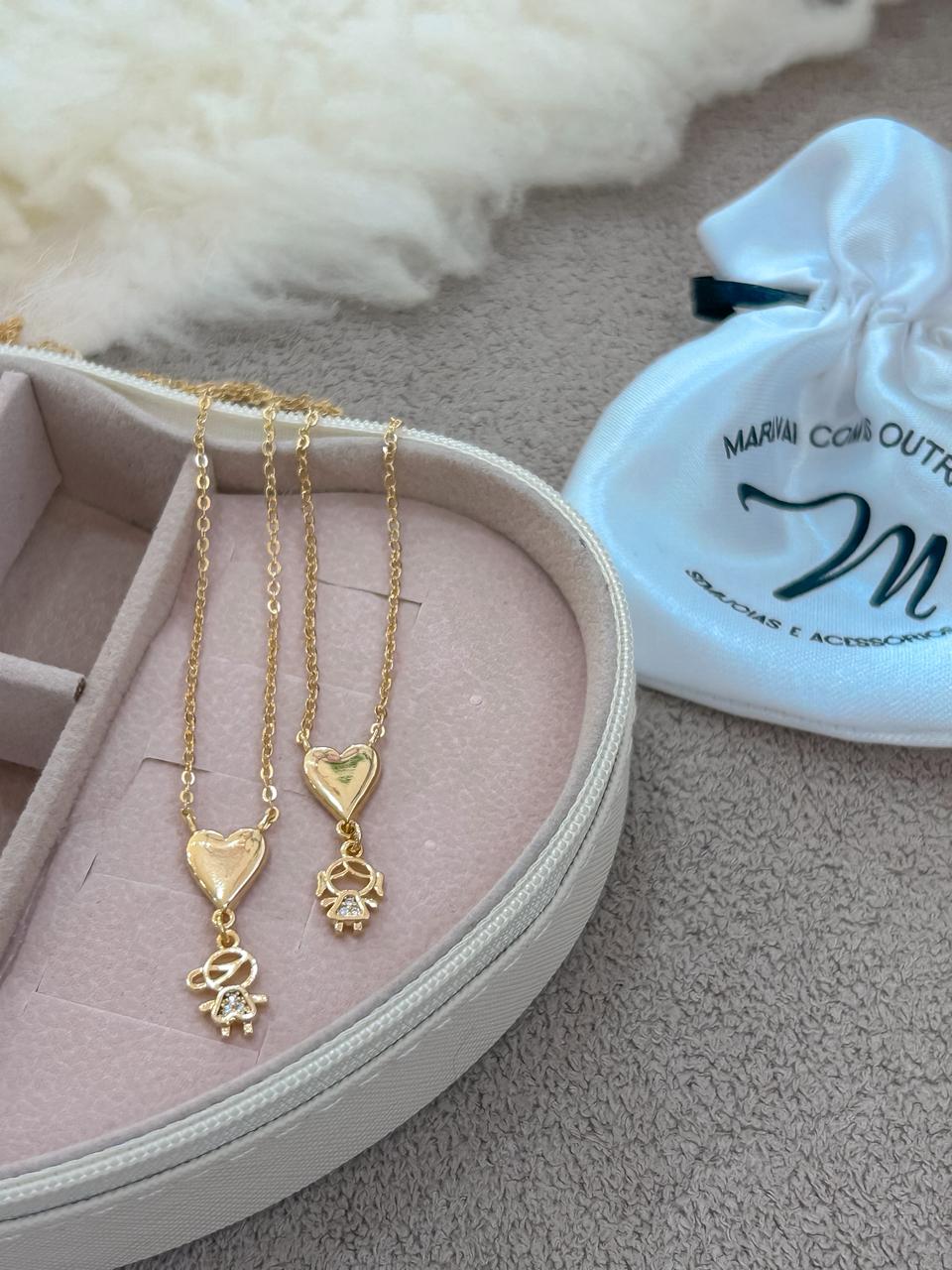 Colar coração pingente de menina banhada em ouro 18k com extensor;