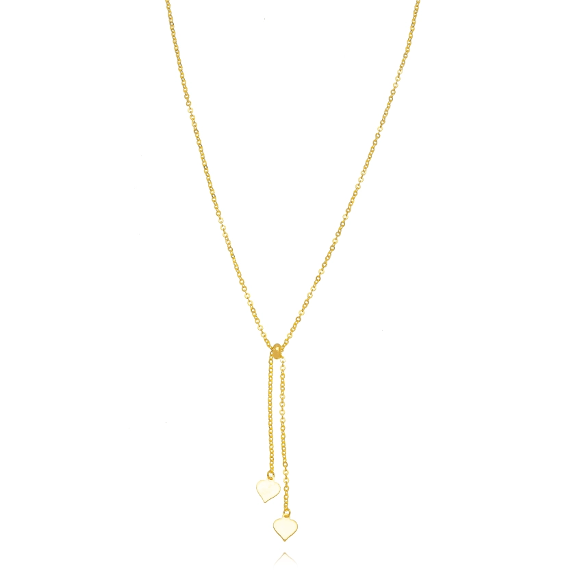 Colar Gravata Coração Liso Confeccionado em Banho de Ouro Amarelo 18K