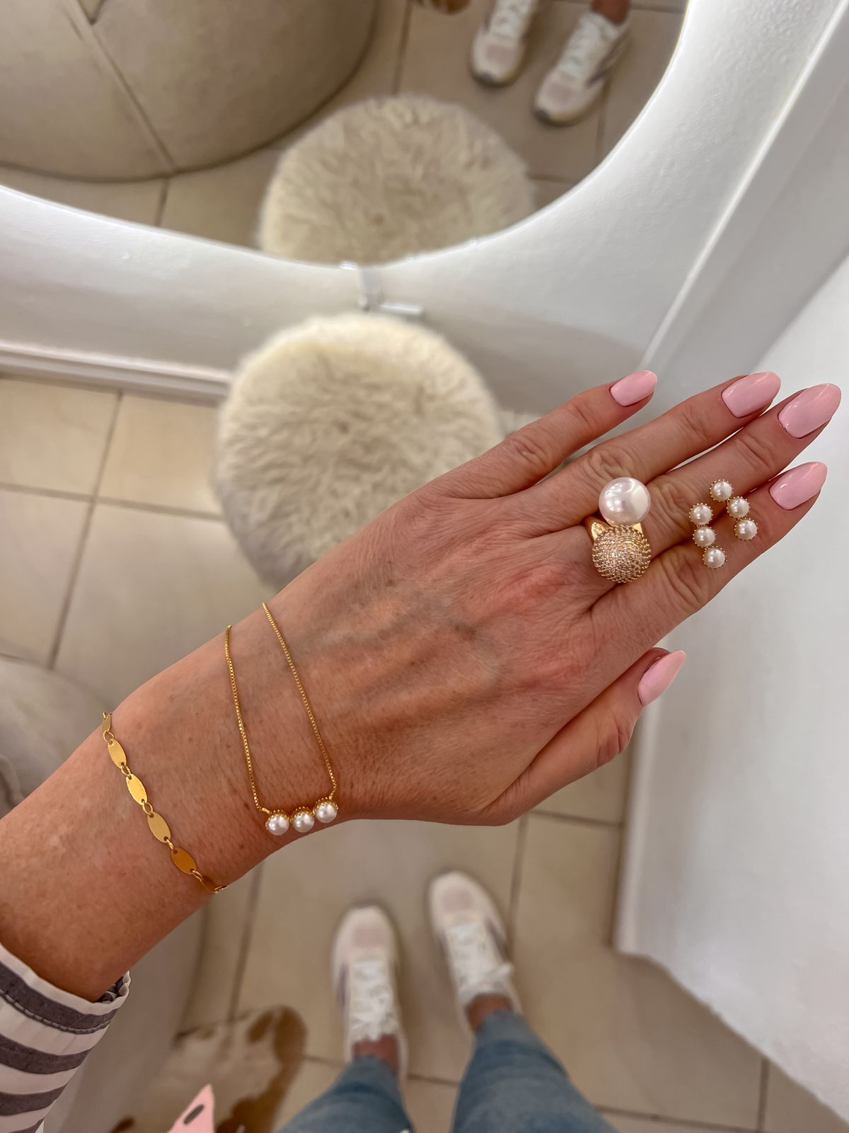 Colar veneziano liso com pingente de pérola banhado em ouro amarelo 18k;