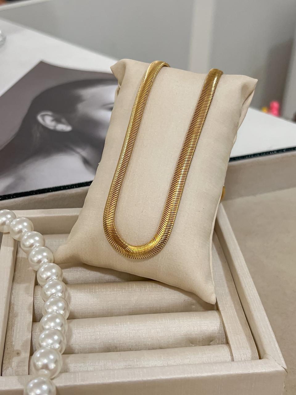 Colar liso com pérola Shell banhado em ouro com extensor;