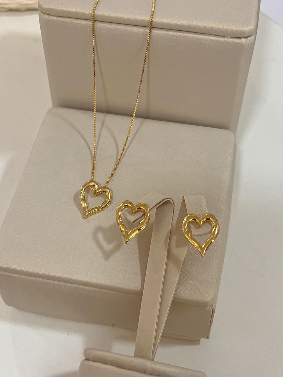 Conjunto Oval Aqua Marinha Confeccionado em Banho de Ouro Amarelo 18K.