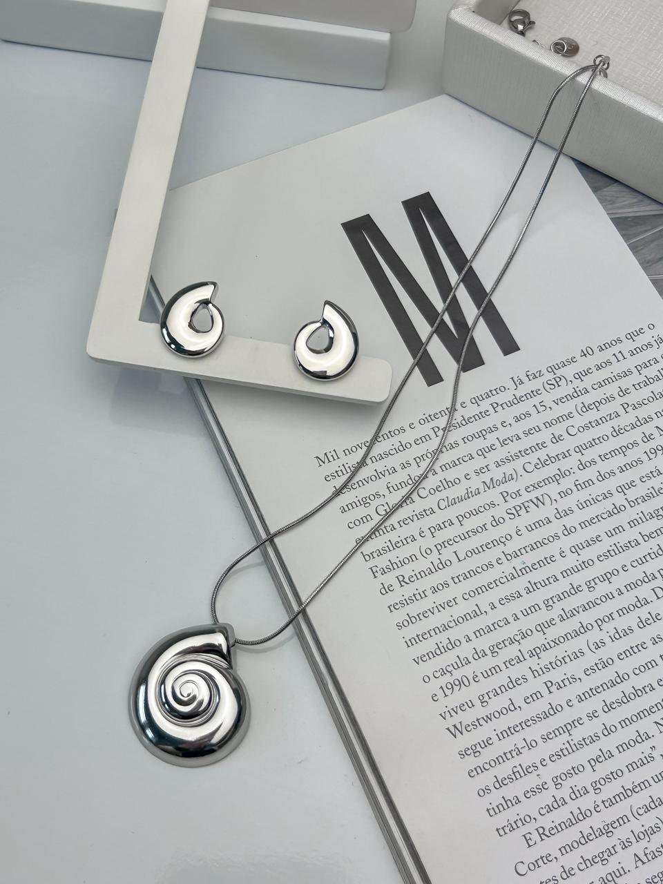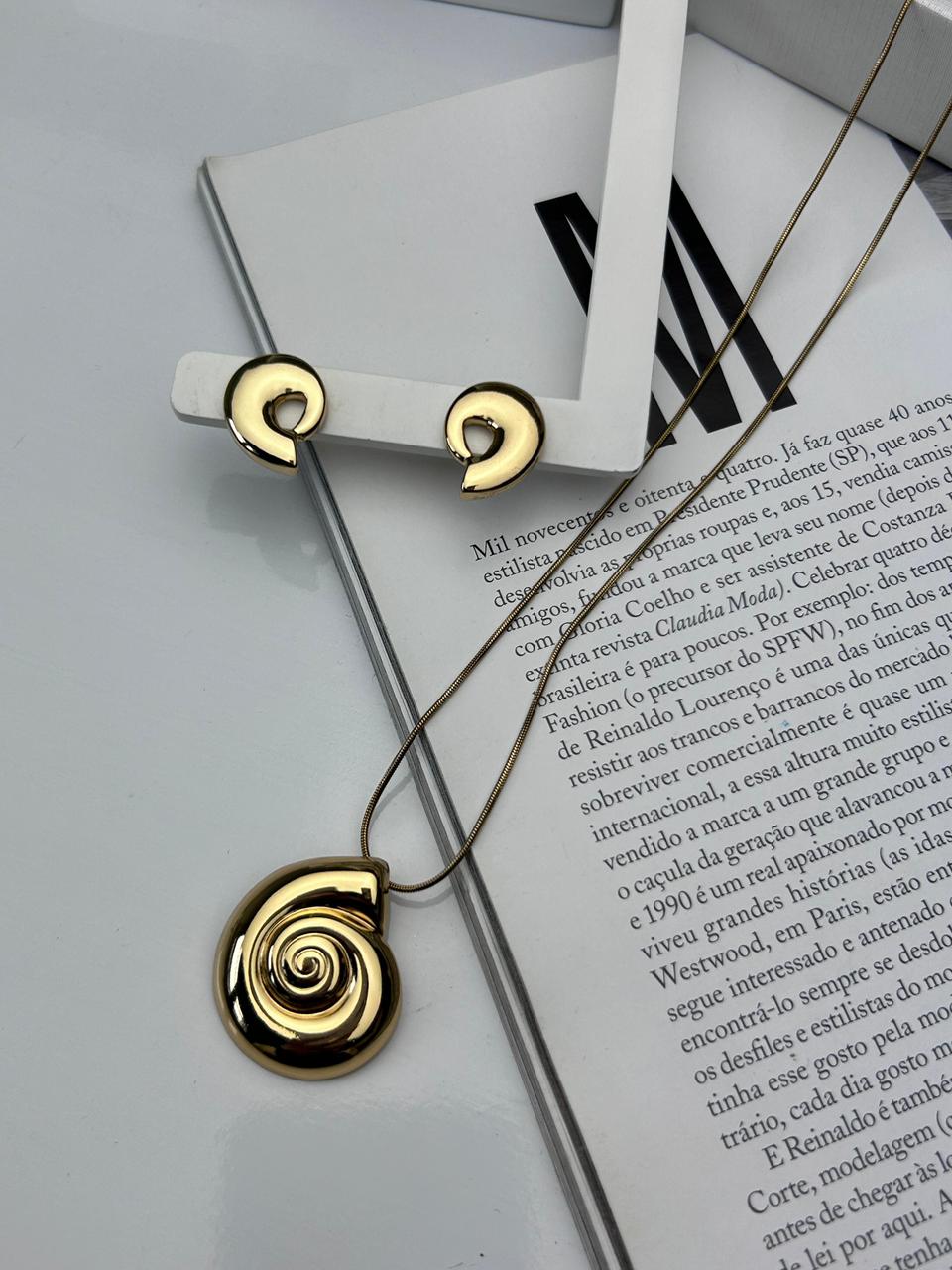 Conjunto caracol colar + brincos banhado em ouro 18k, aço inoxidável.