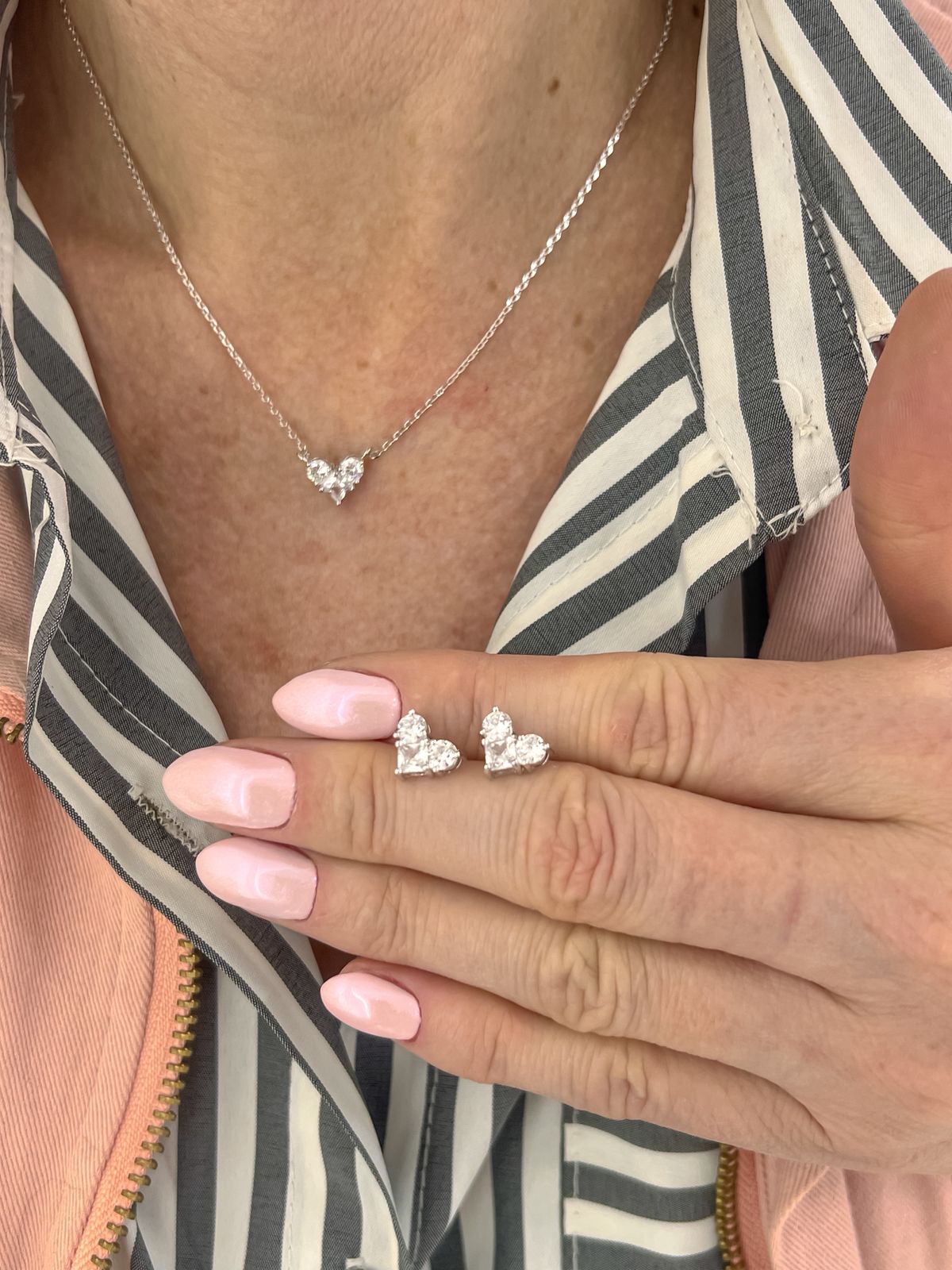 Conjunto colar + brinco cristal banhado em ouro branco;