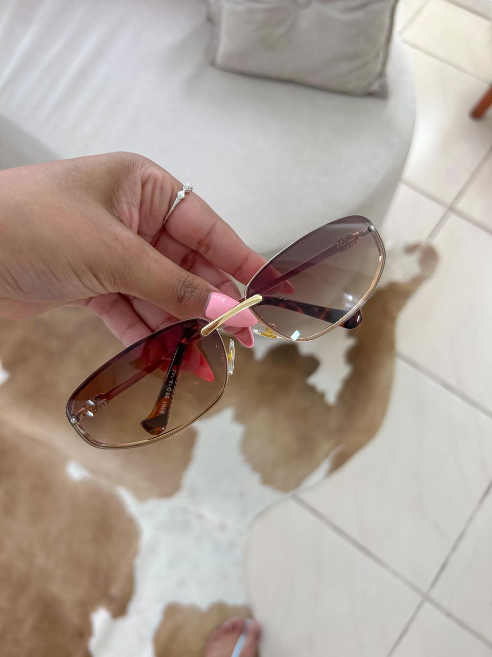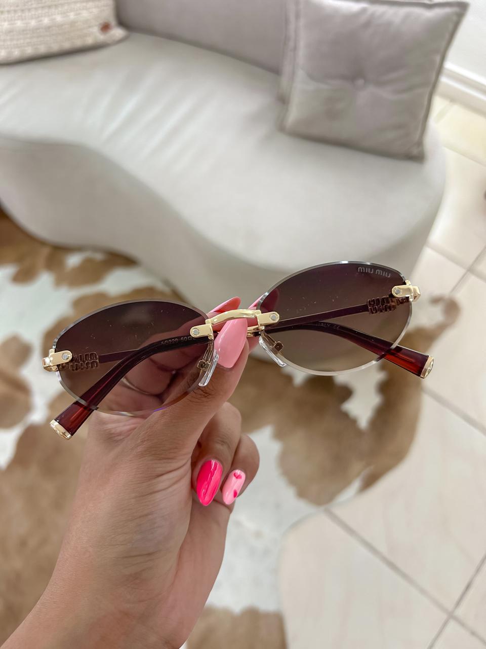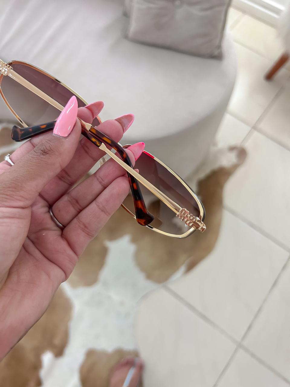 Óculos de sol inspiração miu miu com hastes tigrada e lentes claras;