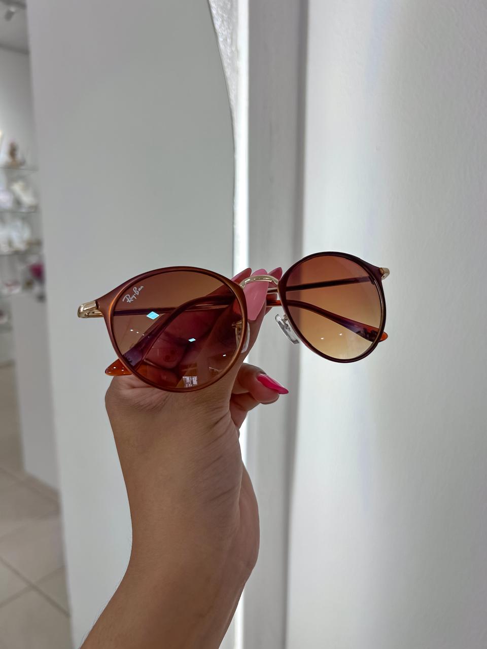 Óculos de sol inspiração ray-ban na com marrom com detalhes dourados e lente escura;